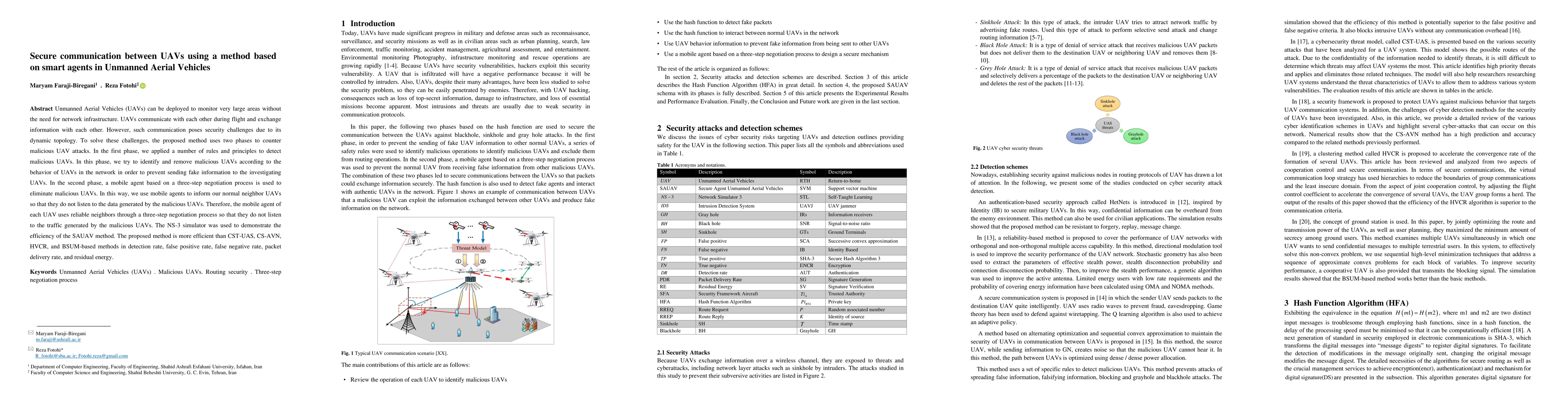 A new method using smart agents improves security in UAV communication by detecting and eliminating malicious attacks with high efficiency, outperforming existing methods.