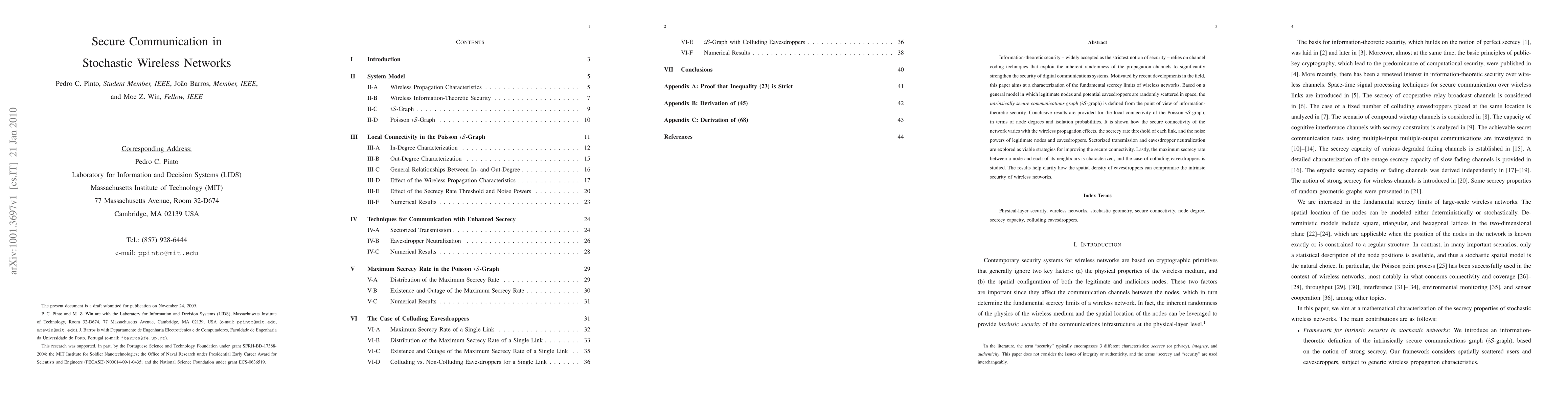 This paper characterizes the security limits of wireless networks using information-theoretic security, focusing on how channel coding exploits channel randomness. Results show that secure connectivity varies with propagation effects, secrecy thresholds, and noise powers. Strategies like sectorized transmission and eavesdropper neutralization are explored, and the maximum secrecy rate is characterized. The study reveals how eavesdropper density impacts wireless network security.