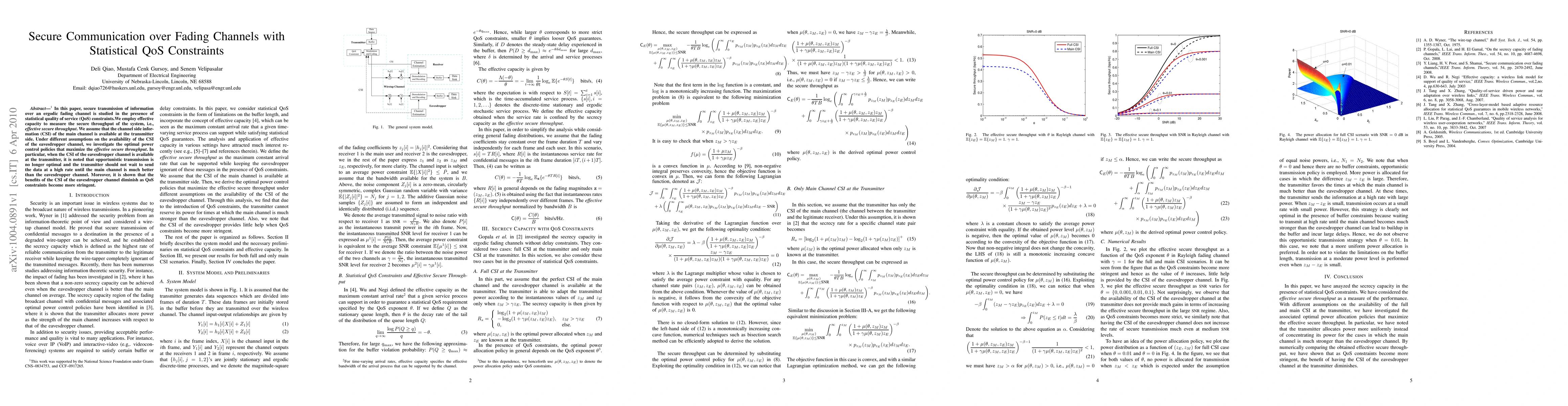 This paper investigates secure information transmission over fading channels under statistical QoS constraints, using effective capacity to measure secure throughput. The study derives optimal power control policies based on the availability of channel side information, showing that stringent QoS constraints diminish the utility of eavesdropper channel information.