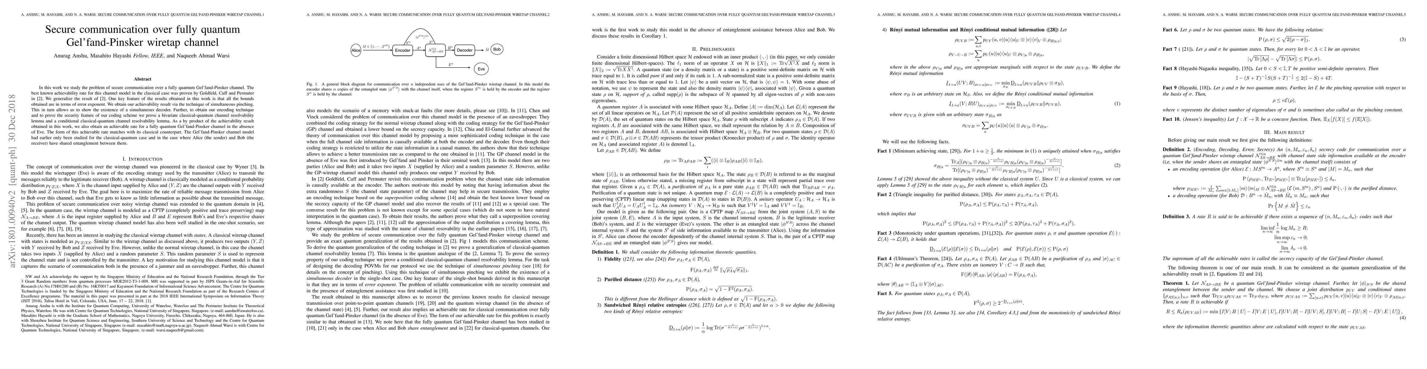 Researchers achieved a secure communication rate over a fully quantum Gel'fand-Pinsker channel, matching its classical counterpart, using a novel technique of simultaneous pinching and proving new lemmas for classical-quantum channel resolvability.