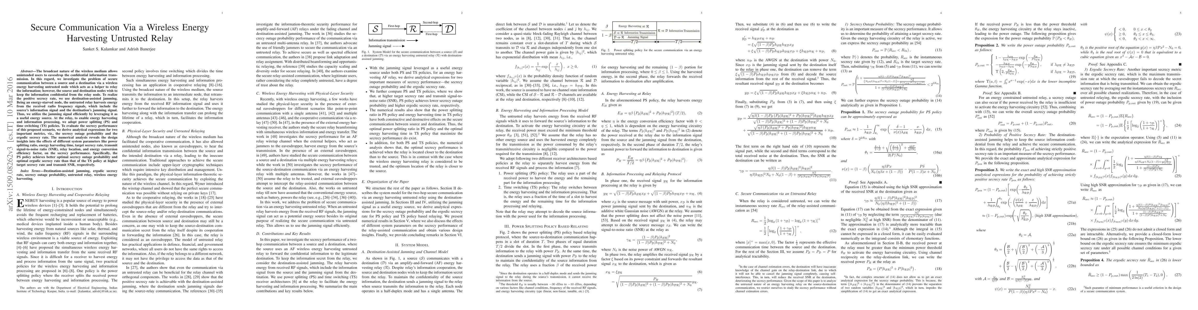 This paper explores secure communication between a source and destination via an untrusted wireless energy harvesting relay, employing destination-assisted jamming to maintain confidentiality. The relay uses power splitting and time switching for energy harvesting and information processing, and analytical expressions for secrecy outage probability and ergodic secrecy rate are derived to evaluate performance.