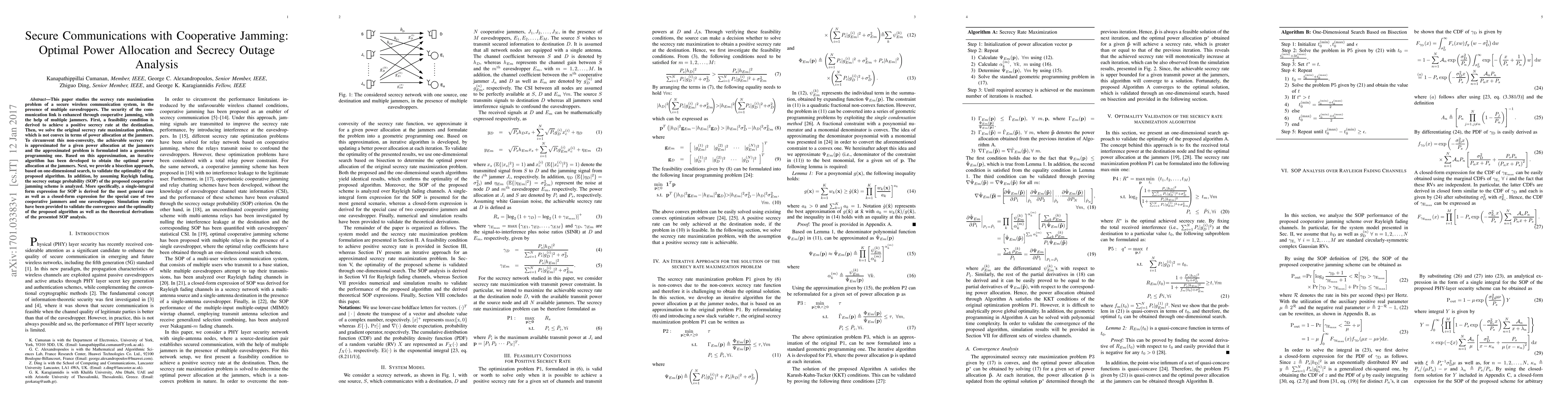 This paper maximizes the secrecy rate in secure wireless communication with multiple eavesdroppers using cooperative jamming. An iterative algorithm is developed for optimal power allocation among jammers, validated through a bisection approach, and the secrecy outage probability is analyzed under Rayleigh fading conditions.
