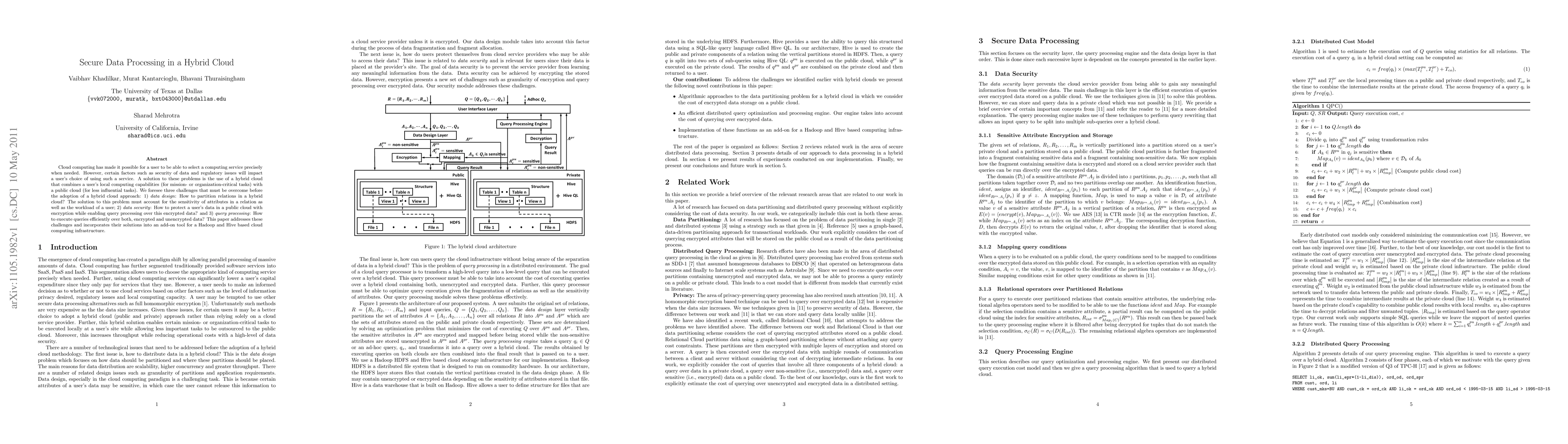 This research paper addresses challenges of secure data processing in a hybrid cloud, proposing solutions to protect sensitive data and enable efficient query processing in both encrypted and unencrypted data.