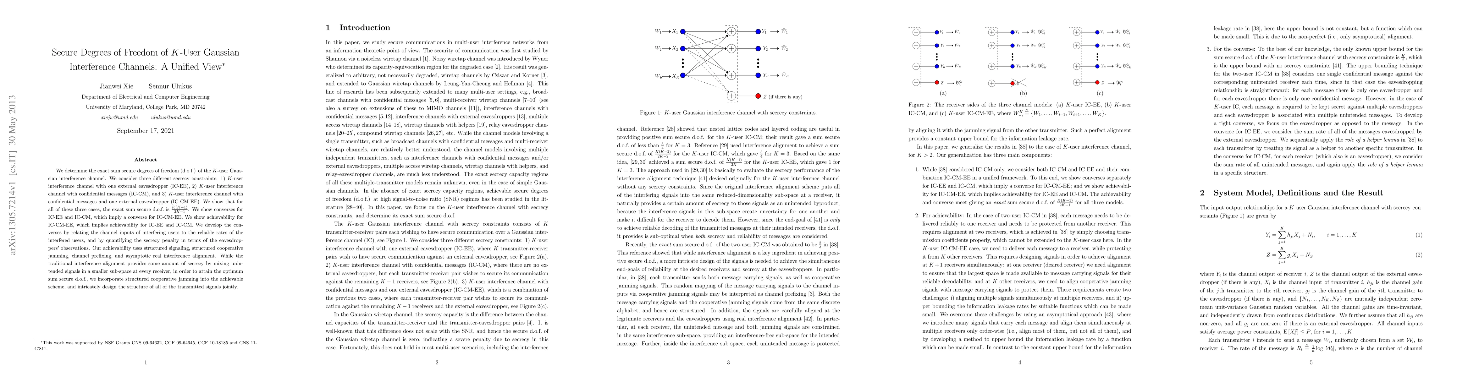 This paper determines the exact sum secure degrees of freedom for K-user Gaussian interference channels under three secrecy constraints, showing the common sum secure d.o.f. is K(K-1)/(2K-1). It develops converses and achievability proofs using structured signaling and cooperative jamming, achieving optimal secrecy through advanced interference alignment techniques.