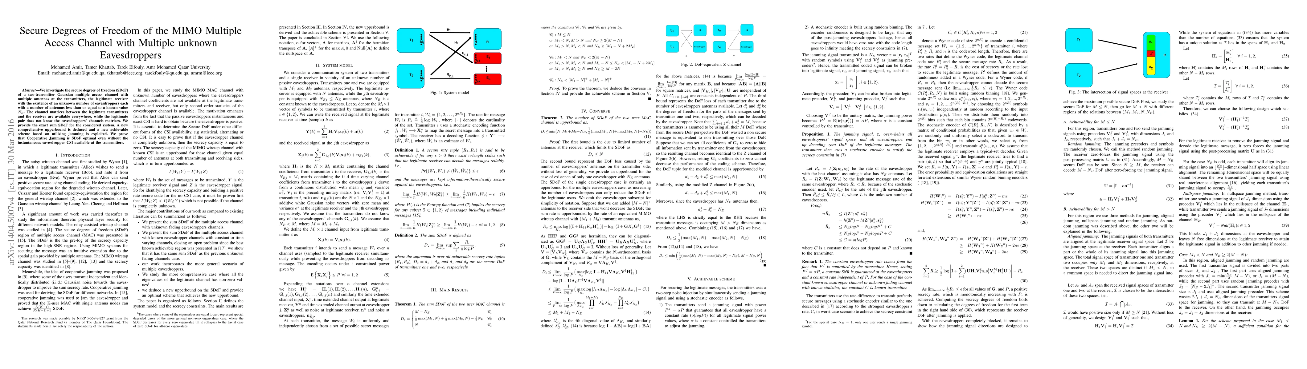 We investigate the secure degrees of freedom (SDoF) of a two-transmitter Gaussian multiple access channel with multiple antennas at the transmitters, the legitimate receiver with the existence of an unknown number of eavesdroppers each with a number of antennas less than or equal to a known value $N_E$. The channel matrices between the legitimate transmitters and the receiver are available everywhere, while the legitimate pair does not know the eavesdroppers' channels matrices. We provide the exact sum SDoF for the considered system. A new comprehensive upperbound is deduced and a new achievable scheme based on utilizing jamming is exploited. We prove that Cooperative Jamming is SDoF optimal even without the instantaneous eavesdropper CSI available at the transmitters.