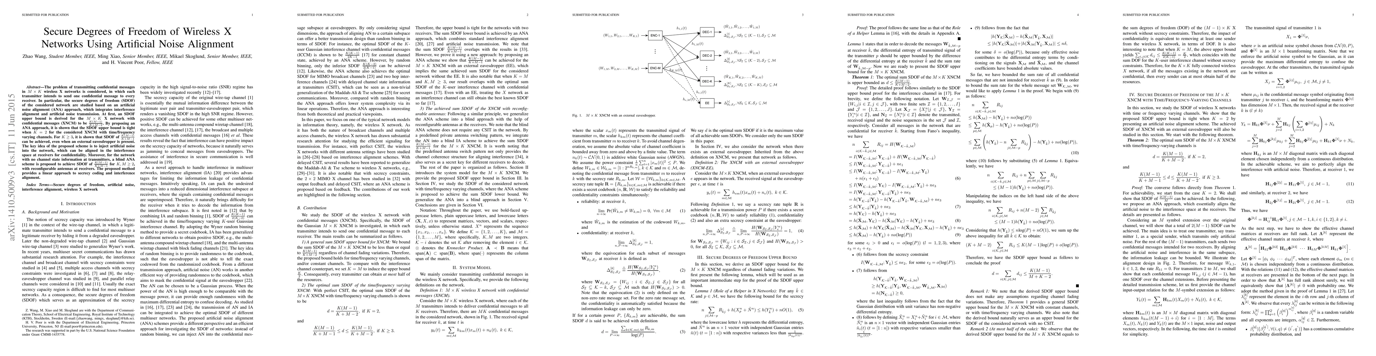 This paper investigates secure degrees of freedom (SDOF) in $M \times K$ wireless X networks using an artificial noise alignment (ANA) approach. It derives an SDOF upper bound and shows that ANA can achieve this bound, even with the presence of eavesdroppers.