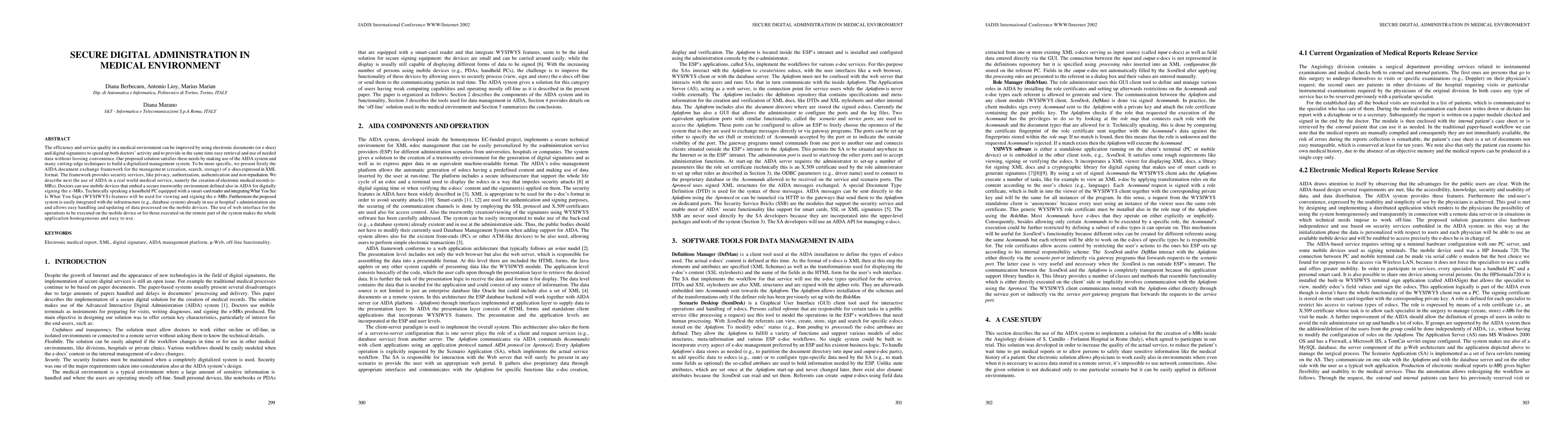 The efficiency and service quality in a medical environment can be improved by using electronic documents (or e-docs) and digital signatures to speed up both doctors' activity and to provide in the same time easy retrieval and use of needed data without loosing convenience. Our proposed solution satisfies these needs by making use of the AIDA system and many cutting-edge techniques to build a digitalized management system. To be more specific, we present firstly the AIDA document exchange framework for the management (creation, search, storage) of e-docs expressed in XML format. The framework provides security services, like privacy, authorization, authentication and non-repudiation. We describe next the use of AIDA in a real world medical service, namely the creation of electronic medical records (e- MRs). Doctors can use mobile devices that embed a secure trustworthy environment defined also in AIDA for digitally signing the e-MRs. Technically speaking a handheld PC equipped with a smart-card reader and integrating What You See Is What You Sign (WYSIWYS) features will be used for viewing and signing the e-MRs. Furthermore the proposed system is easily integrated with the infrastructure (e.g., database system) already in use at hospital's administration site and allows easy handling and updating of data processed on the mobile devices. The use of web interface for the operations to be executed on the mobile device or for those executed on the remote part of the system makes the whole application homogeneous and easy to use.