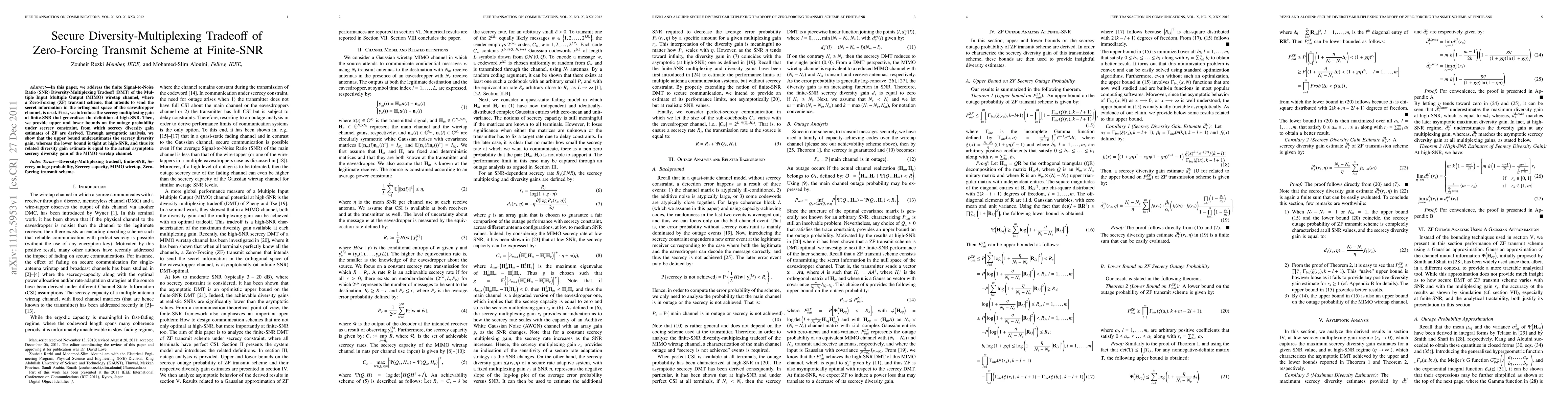 In this paper, we address the finite Signal-to-Noise Ratio (SNR) Diversity-Multiplexing Tradeoff (DMT) of the Multiple Input Multiple Output (MIMO) wiretap channel, where a Zero-Forcing (ZF) transmit scheme, that intends to send the secret information in the orthogonal space of the eavesdropper channel, is used. First, we introduce the secrecy multiplexing gain at finite-SNR that generalizes the definition at high-SNR. Then, we provide upper and lower bounds on the outage probability under secrecy constraint, from which secrecy diversity gain estimates of ZF are derived. Through asymptotic analysis, we show that the upper bound underestimates the secrecy diversity gain, whereas the lower bound is tight at high-SNR, and thus its related diversity gain estimate is equal to the actual asymptotic secrecy diversity gain of the MIMO wiretap channel.