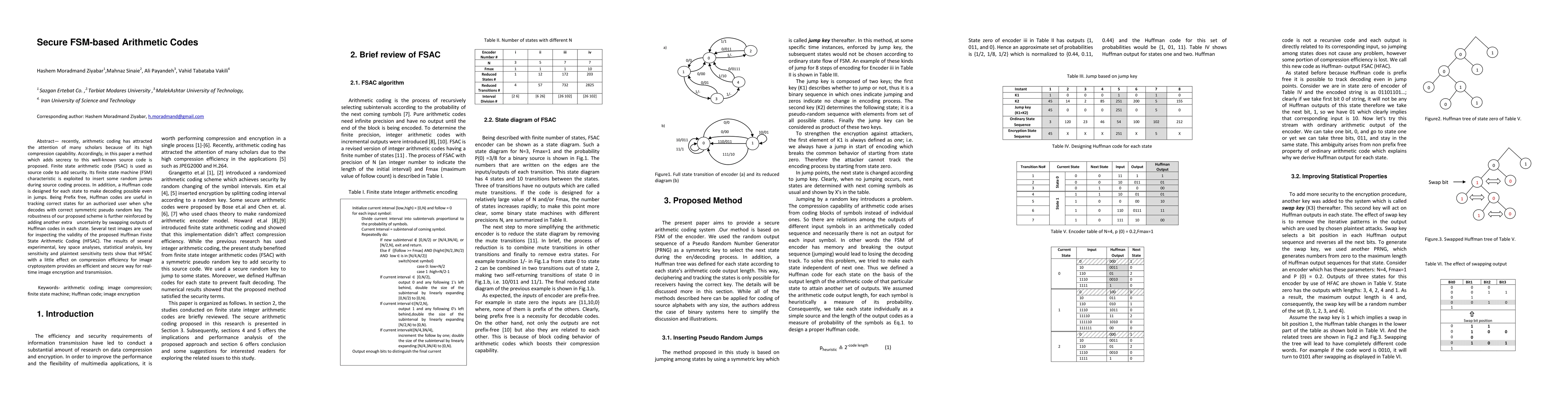 This paper proposes a secure arithmetic coding method, Huffman Finite State Arithmetic Coding (HFSAC), which enhances image encryption and transmission security. It exploits the finite state machine of Finite State Arithmetic Code (FSAC) to introduce random jumps, using Huffman codes for state tracking. Additional uncertainty is added by swapping Huffman code outputs, ensuring robustness and efficiency with minimal compression impact.