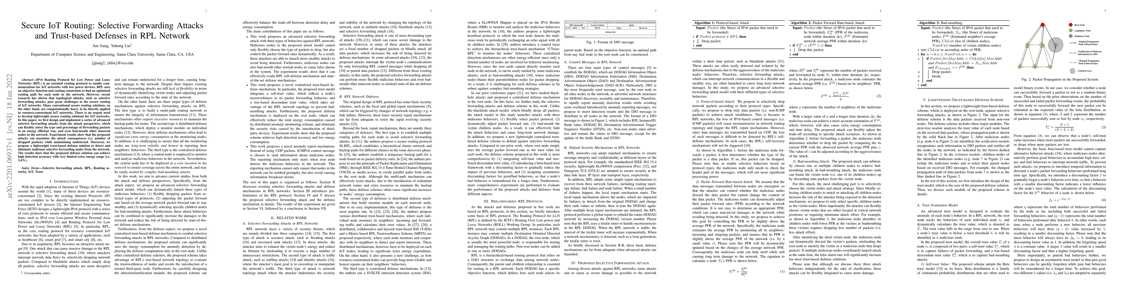 This paper investigates selective forwarding attacks in RPL-based IoT networks and proposes a lightweight trust-based defense mechanism. It demonstrates advanced attacks that maximize packet drops while remaining undetected, and shows that the proposed defense can achieve high accuracy with minimal additional energy consumption.