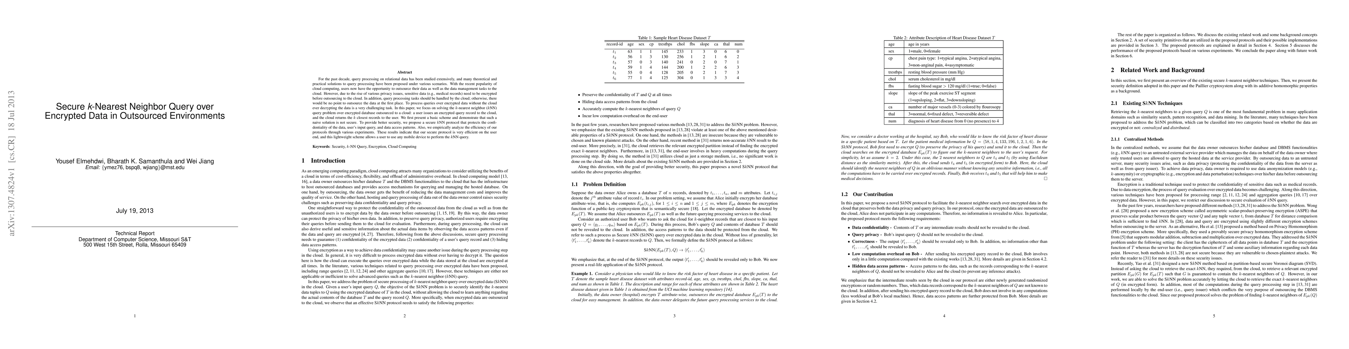 This paper proposes a secure k-nearest neighbor (kNN) query protocol for encrypted data outsourced to a cloud environment, ensuring data confidentiality without revealing sensitive information. The authors demonstrate that a basic scheme is insecure and introduce a more secure protocol, which is efficient and suitable for mobile devices.