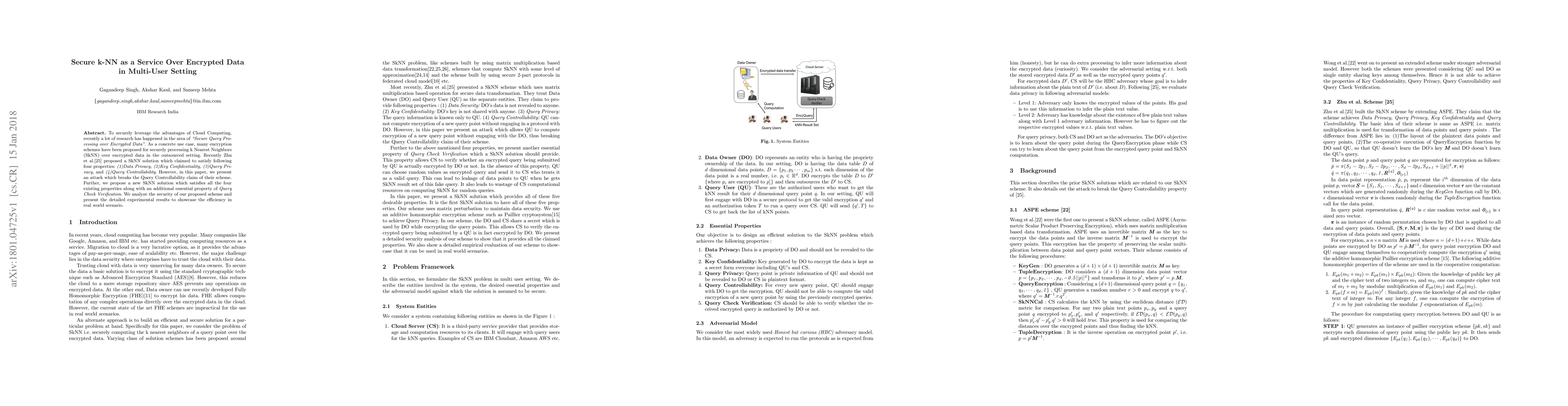 To securely leverage the advantages of Cloud Computing, recently a lot of research has happened in the area of "Secure Query Processing over Encrypted Data". As a concrete use case, many encryption schemes have been proposed for securely processing k Nearest Neighbors (SkNN) over encrypted data in the outsourced setting. Recently Zhu et al[25]. proposed a SkNN solution which claimed to satisfy following four properties: (1)Data Privacy, (2)Key Confidentiality, (3)Query Privacy, and (4)Query Controllability. However, in this paper, we present an attack which breaks the Query Controllability claim of their scheme. Further, we propose a new SkNN solution which satisfies all the four existing properties along with an additional essential property of Query Check Verification. We analyze the security of our proposed scheme and present the detailed experimental results to showcase the efficiency in real world scenario.