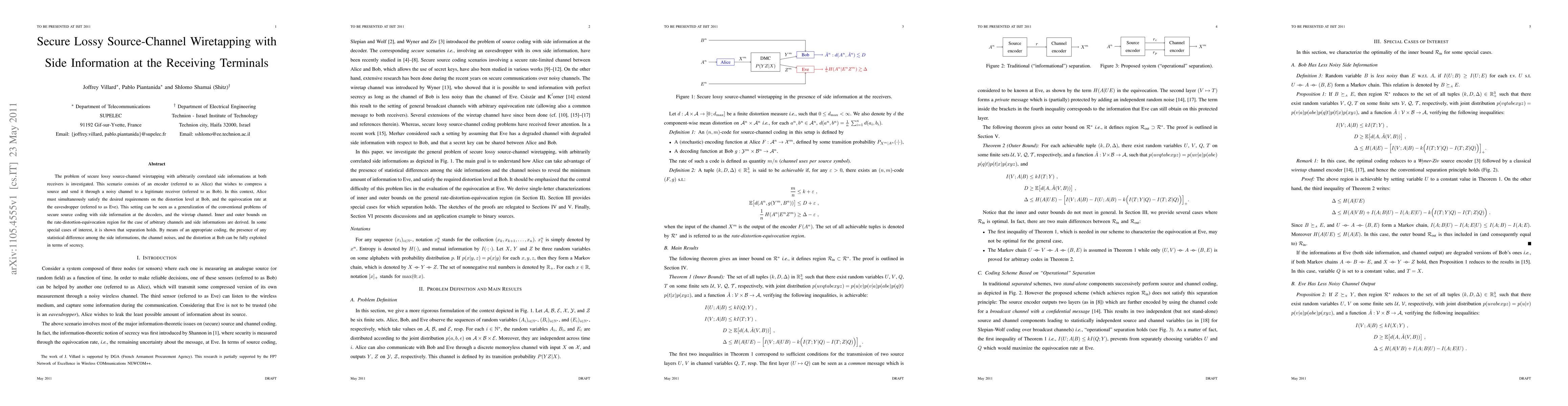 This paper explores secure lossy source-channel wiretapping with side information at Bob's terminal, deriving inner and outer bounds for the rate-distortion-equivocation region. It demonstrates that separation holds in special cases and shows how statistical differences can enhance secrecy.