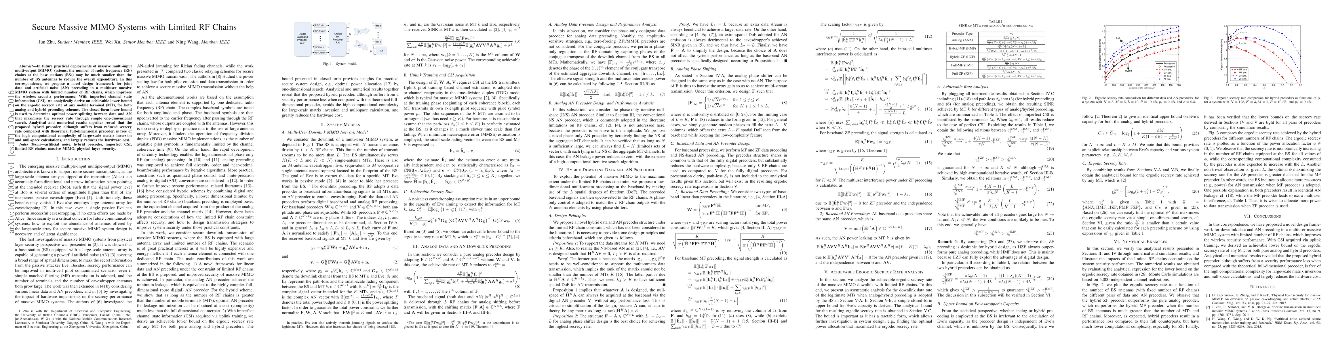 This research is significant as it addresses the practical challenge of limited RF chains in massive MIMO systems while enhancing wireless security performance, which is crucial for future wireless communications.