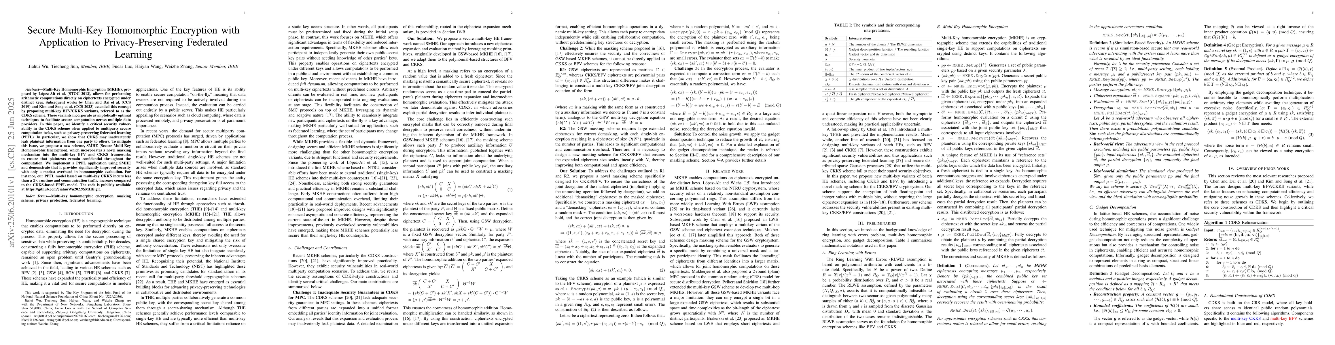 This work is novel as it addresses critical security vulnerabilities identified in previous MKHE schemes and provides a secure and efficient solution for privacy-preserving FL.