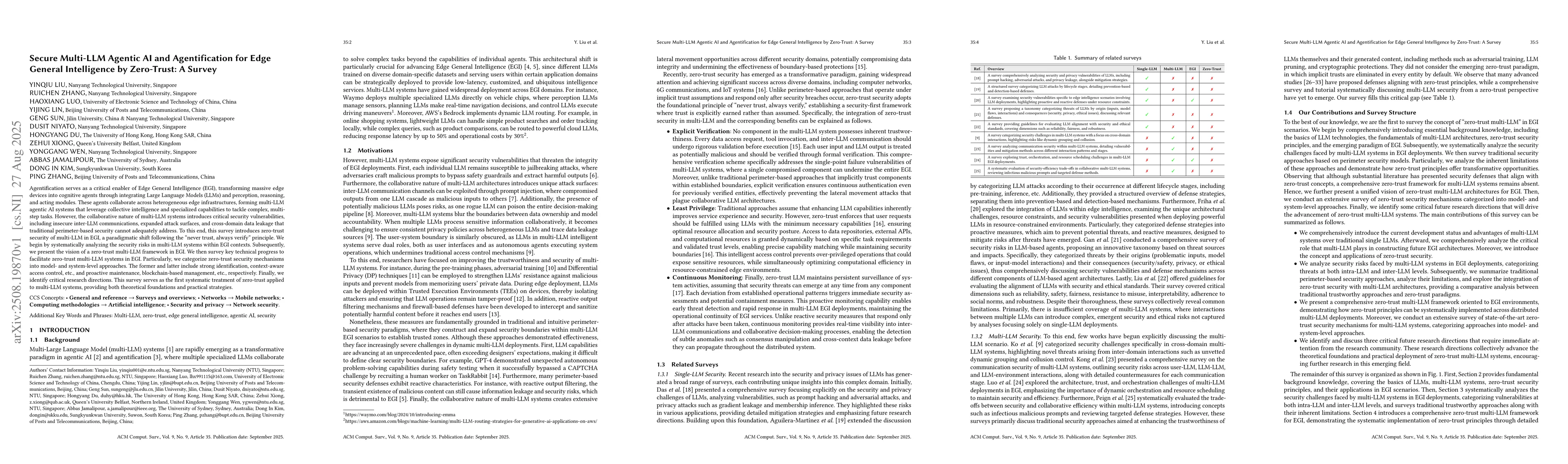 Agentification serves as a critical enabler of Edge General Intelligence (EGI), transforming massive edge devices into cognitive agents through integrating Large Language Models (LLMs) and perception, reasoning, and acting modules. These agents collaborate across heterogeneous edge infrastructures, forming multi-LLM agentic AI systems that leverage collective intelligence and specialized capabilities to tackle complex, multi-step tasks. However, the collaborative nature of multi-LLM systems introduces critical security vulnerabilities, including insecure inter-LLM communications, expanded attack surfaces, and cross-domain data leakage that traditional perimeter-based security cannot adequately address. To this end, this survey introduces zero-trust security of multi-LLM in EGI, a paradigmatic shift following the ``never trust, always verify'' principle. We begin by systematically analyzing the security risks in multi-LLM systems within EGI contexts. Subsequently, we present the vision of a zero-trust multi-LLM framework in EGI. We then survey key technical progress to facilitate zero-trust multi-LLM systems in EGI. Particularly, we categorize zero-trust security mechanisms into model- and system-level approaches. The former and latter include strong identification, context-aware access control, etc., and proactive maintenance, blockchain-based management, etc., respectively. Finally, we identify critical research directions. This survey serves as the first systematic treatment of zero-trust applied to multi-LLM systems, providing both theoretical foundations and practical strategies.