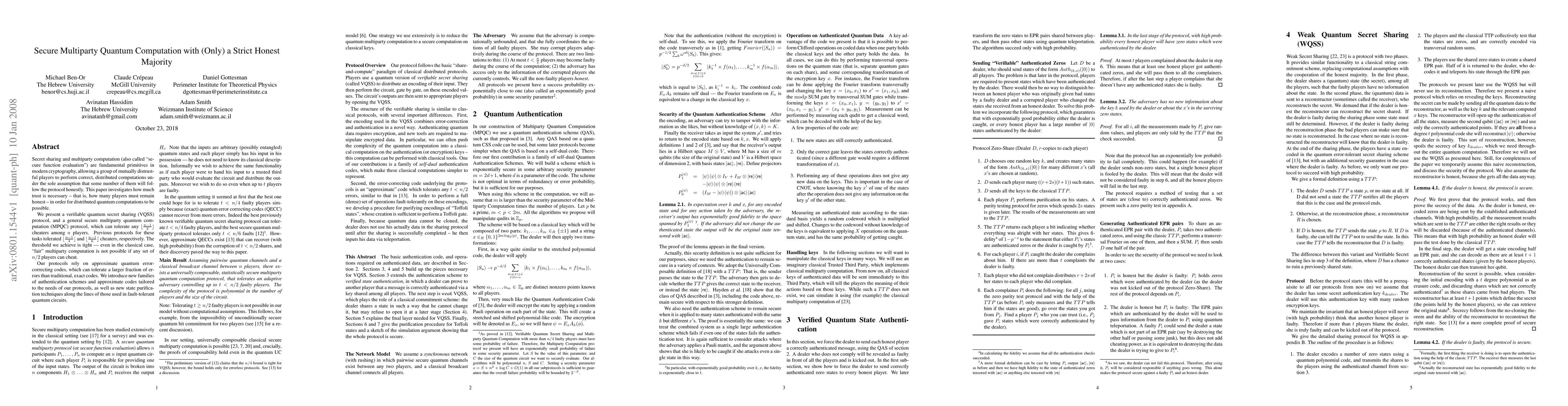 Secret sharing and multiparty computation (also called "secure function evaluation") are fundamental primitives in modern cryptography, allowing a group of mutually distrustful players to perform correct, distributed computations under the sole assumption that some number of them will follow the protocol honestly. This paper investigates how much trust is necessary -- that is, how many players must remain honest -- in order for distributed quantum computations to be possible. We present a verifiable quantum secret sharing (VQSS) protocol, and a general secure multiparty quantum computation (MPQC) protocol, which can tolerate any (n-1)/2 (rounded down) cheaters among n players. Previous protocols for these tasks tolerated (n-1)/4 (rounded down) and (n-1)/6 (rounded down) cheaters, respectively. The threshold we achieve is tight - even in the classical case, ``fair'' multiparty computation is not possible if any set of n/2 players can cheat. Our protocols rely on approximate quantum error-correcting codes, which can tolerate a larger fraction of errors than traditional, exact codes. We introduce new families of authentication schemes and approximate codes tailored to the needs of our protocols, as well as new state purification techniques along the lines of those used in fault-tolerant quantum circuits.