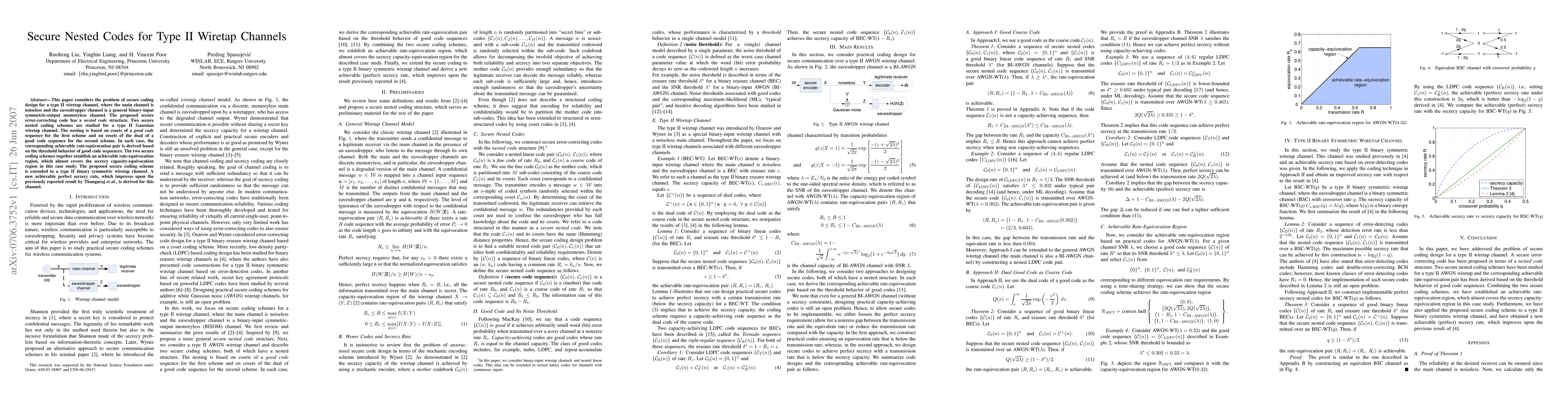 This paper proposes secure coding schemes for type II wiretap channels, utilizing nested codes based on coset structures. It establishes an achievable rate-equivocation region that nearly covers the secrecy capacity-equivocation region for both Gaussian and binary symmetric channels, improving upon previous results.