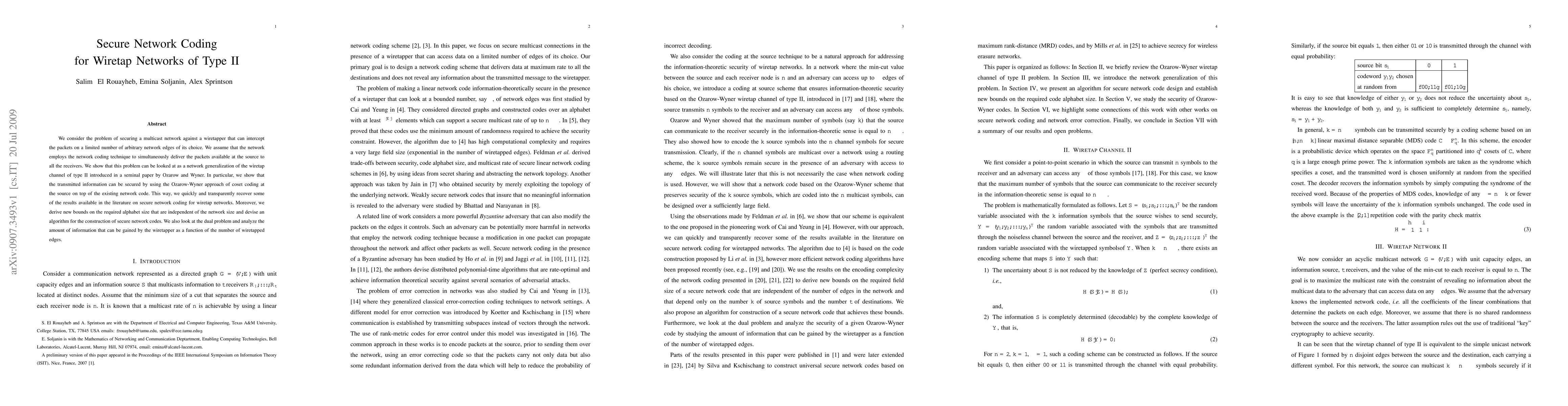 This paper addresses securing multicast networks using network coding against wiretappers that can intercept packets on selected network edges. It generalizes the wiretap channel of type II and employs coset coding to secure the transmitted information, deriving new bounds on the required alphabet size and presenting an algorithm for secure network code construction.