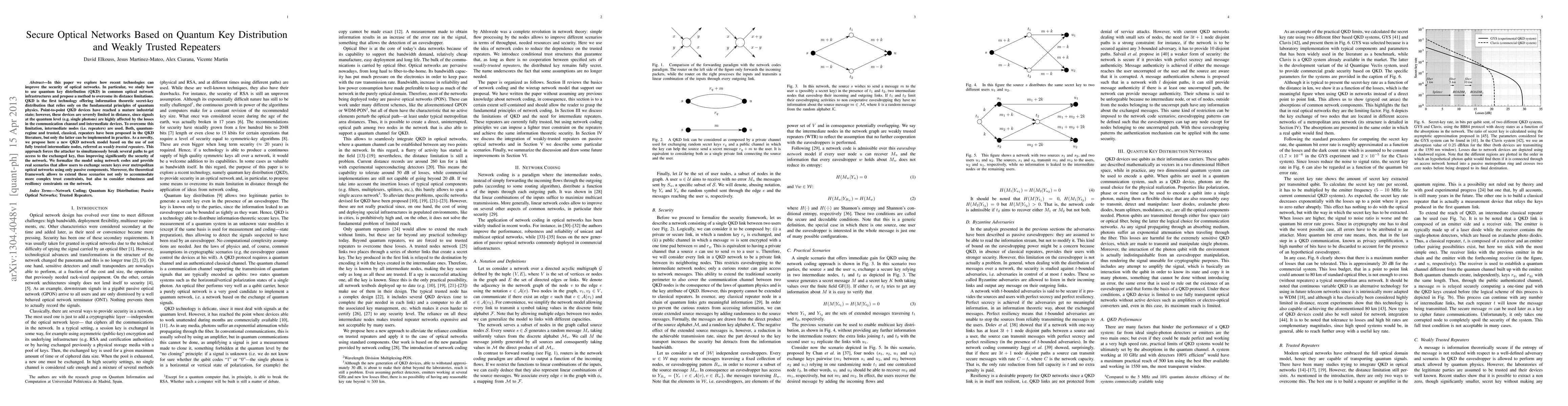 This paper investigates the integration of quantum key distribution (QKD) into optical networks to enhance security, proposing a novel QKD network model using weakly trusted repeaters. This approach significantly improves security by requiring an attacker to breach multiple paths, and it leverages network codes to enable secure key exchange over metropolitan optical networks using only passive components.