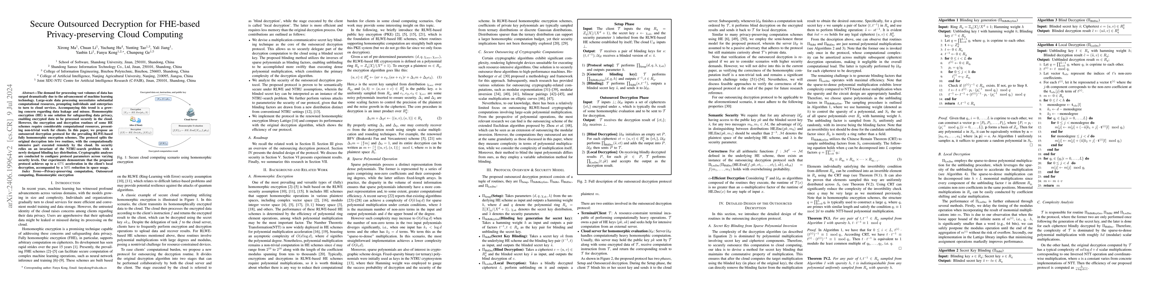 This paper proposes an outsourced decryption protocol for RLWE-based homomorphic encryption schemes to offload computationally intensive decryption tasks to cloud services, enhancing security and efficiency while reducing client-side resource usage by up to $67\%$.