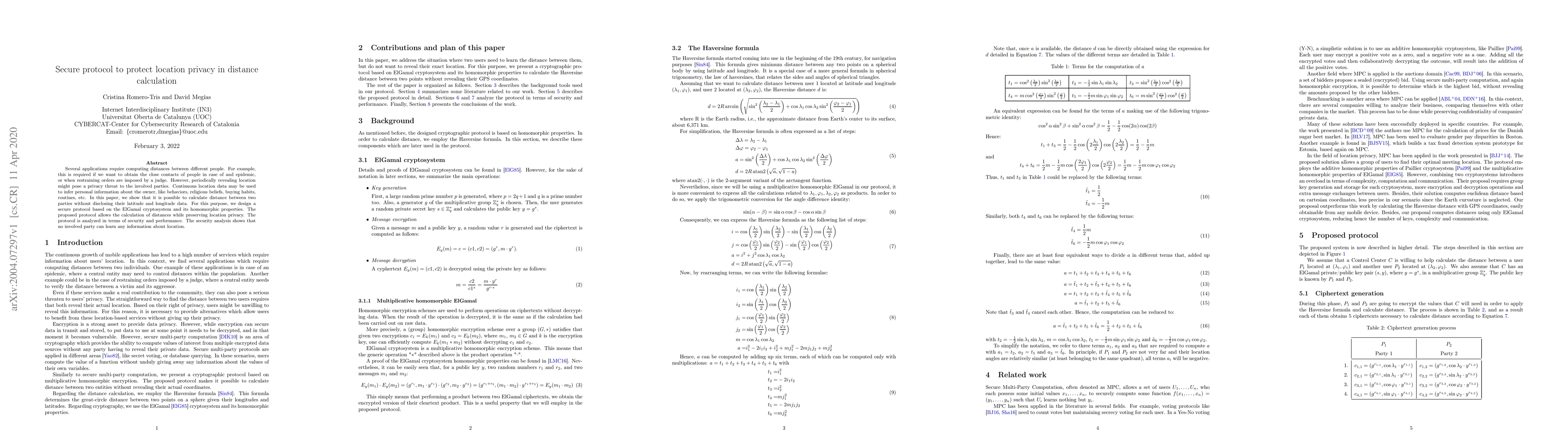A new secure protocol using ElGamal cryptosystem protects location privacy in distance calculations, preserving personal information and ensuring the anonymity of individuals.