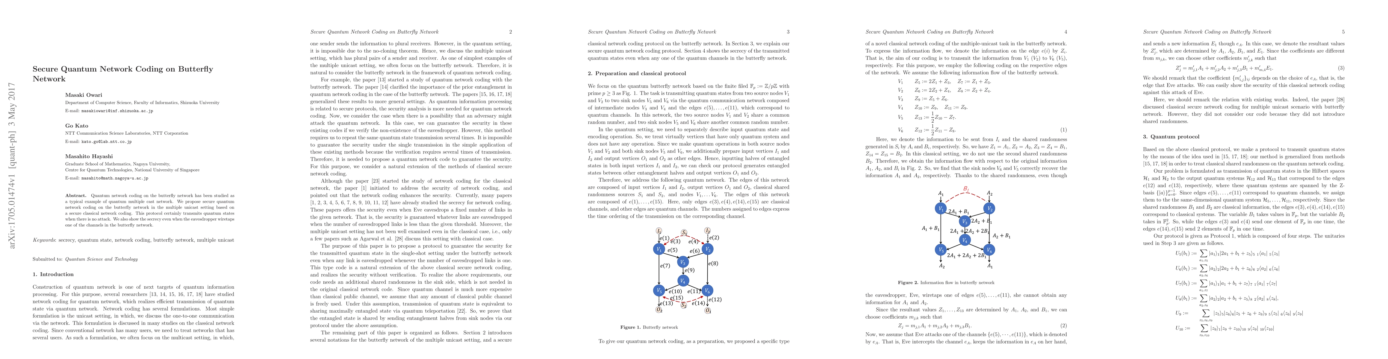This paper proposes a secure quantum network coding protocol for the butterfly network, ensuring secure transmission of quantum states in a multiple unicast setting, maintaining secrecy even against eavesdropping on one channel.