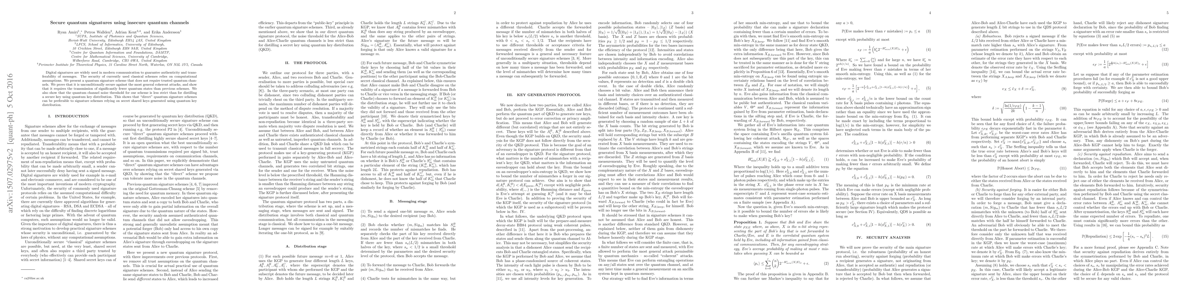 Researchers developed a quantum signature scheme that uses insecure quantum channels to ensure unconditional security against attacks. This method requires fewer quantum states than previous schemes, making it preferable for certain applications.