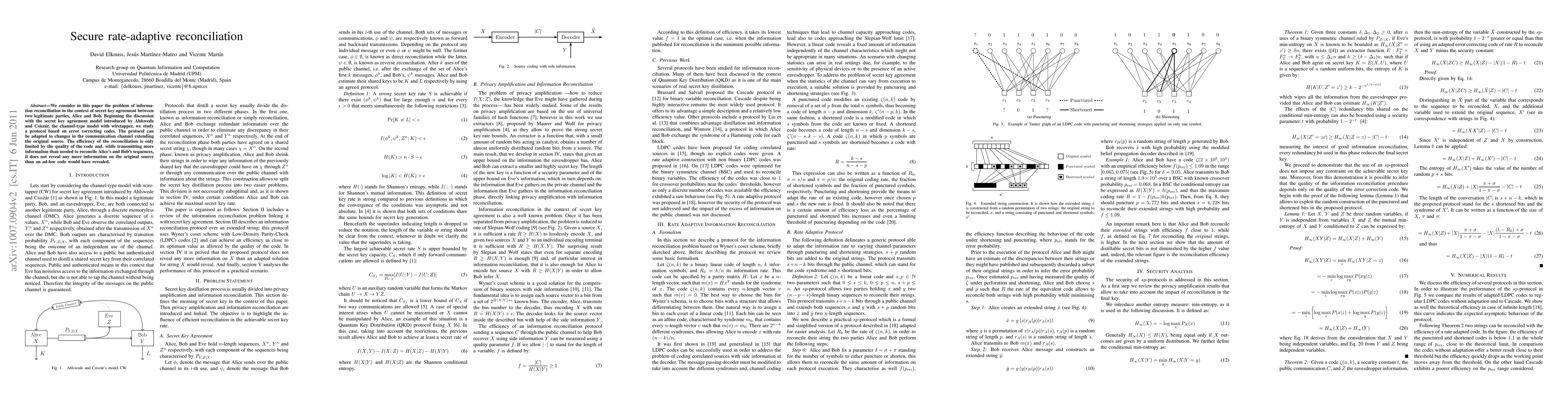 We consider in this paper the problem of information reconciliation in the context of secret key agreement between two legitimate parties, Alice and Bob. Beginning the discussion with the secret key agreement model introduced by Ahlswede and Csisz\'ar, the channel-type model with wiretapper, we study a protocol based on error correcting codes. The protocol can be adapted to changes in the communication channel extending the original source. The efficiency of the reconciliation is only limited by the quality of the code and, while transmitting more information than needed to reconcile Alice's and Bob's sequences, it does not reveal any more information on the original source than an ad-hoc code would have revealed.