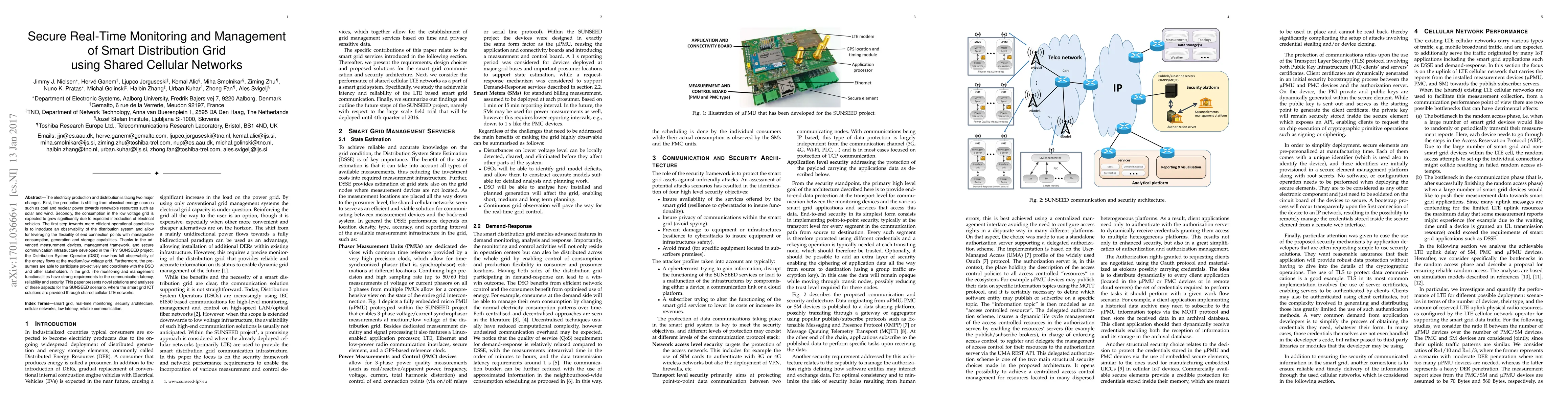 The electricity production and distribution is facing two major changes. First, the production is shifting from classical energy sources such as coal and nuclear power towards renewable resources such as solar and wind. Secondly, the consumption in the low voltage grid is expected to grow significantly due to expected introduction of electrical vehicles. The first step towards more efficient operational capabilities is to introduce an observability of the distribution system and allow for leveraging the flexibility of end connection points with manageable consumption, generation and storage capabilities. Thanks to the advanced measurement devices, management framework, and secure communication infrastructure developed in the FP7 SUNSEED project, the Distribution System Operator (DSO) now has full observability of the energy flows at the medium/low voltage grid. Furthermore, the prosumers are able to participate pro-actively and coordinate with the DSO and other stakeholders in the grid. The monitoring and management functionalities have strong requirements to the communication latency, reliability and security. This paper presents novel solutions and analyses of these aspects for the SUNSEED scenario, where the smart grid ICT solutions are provided through shared cellular LTE networks.