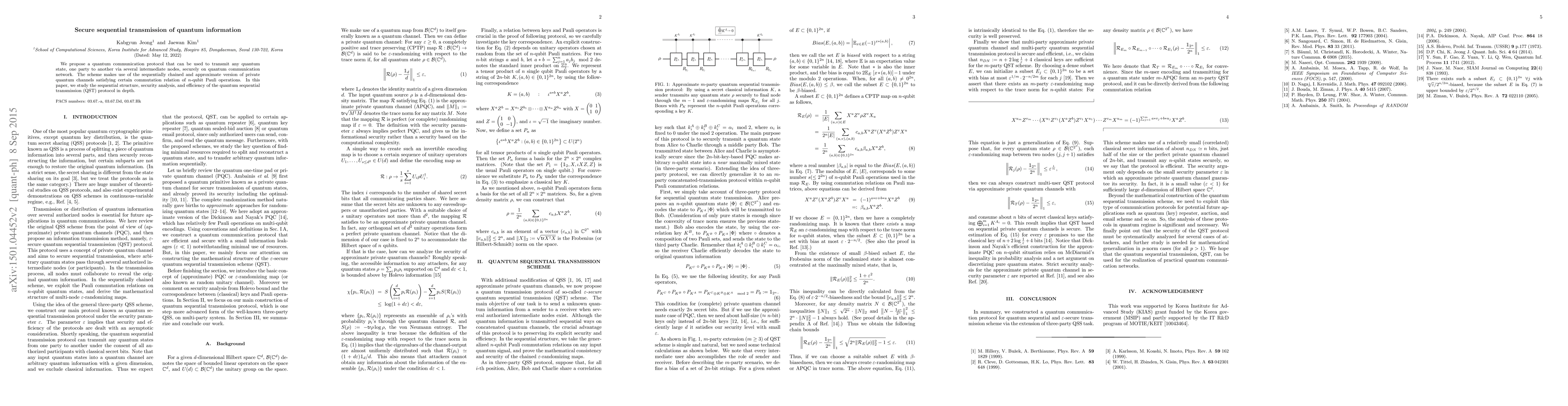 Quantum sequential transmission protocol has potential applications in quantum key repeaters, auctions, and email schemes