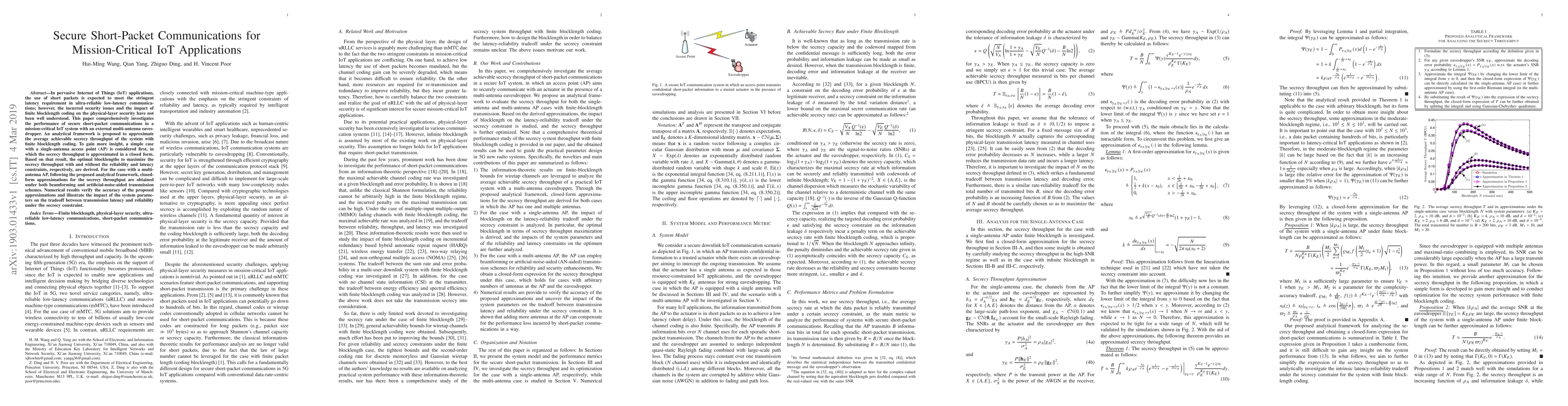 This paper investigates secure short-packet communications for mission-critical IoT applications, proposing an analytical framework to approximate average achievable secrecy throughput under finite blocklength coding. It derives optimal blocklengths for maximizing secrecy throughput with and without reliability and latency constraints, and provides closed-form approximations for multi-antenna access points.