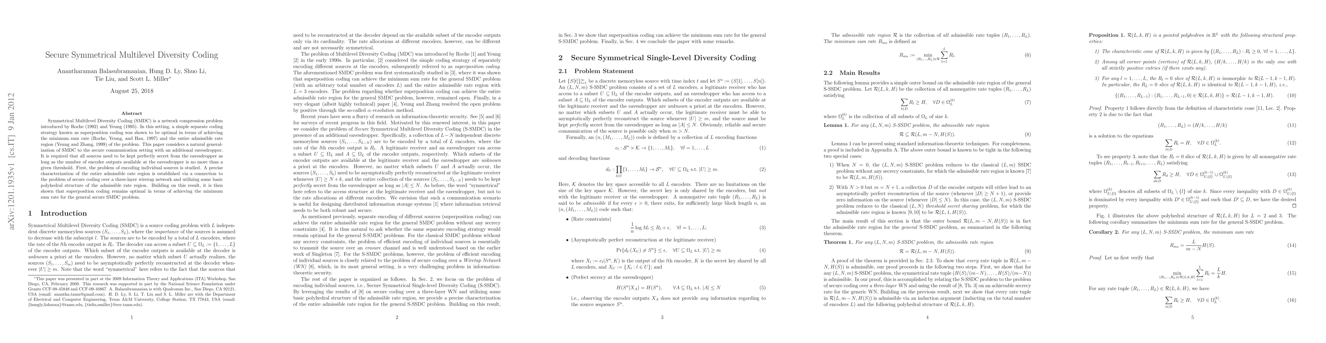 A research paper explores a natural generalization of Symmetrical Multilevel Diversity Coding to secure communication with an additional eavesdropper, finding that superposition coding remains optimal for achieving the minimum sum rate.