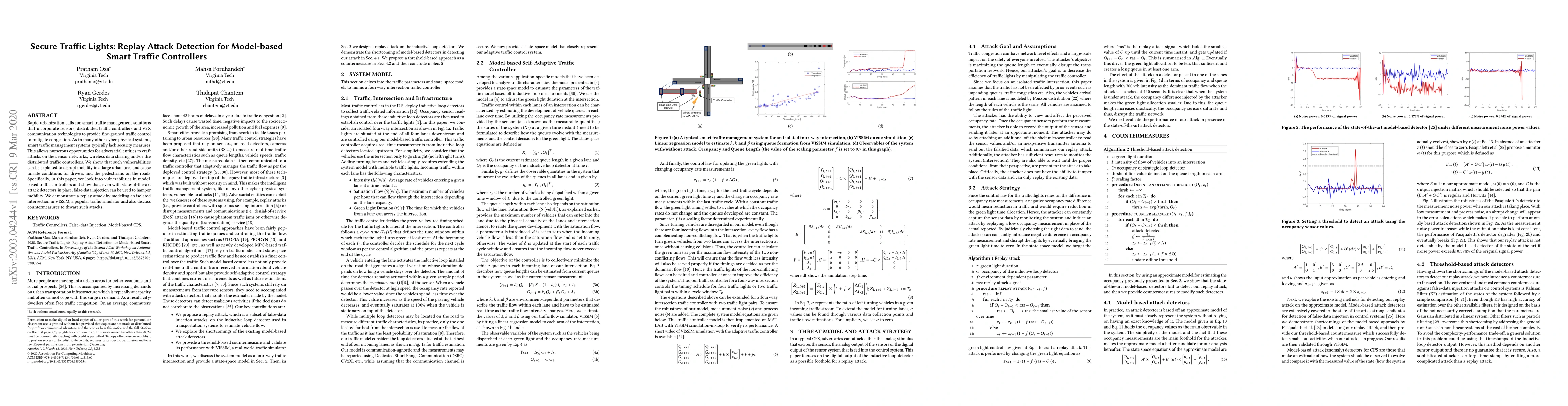 This paper investigates vulnerabilities in model-based smart traffic controllers, demonstrating how replay attacks can disrupt urban mobility and cause safety hazards. It proposes countermeasures to detect and prevent such attacks, highlighting the need for robust security measures in smart traffic management systems.