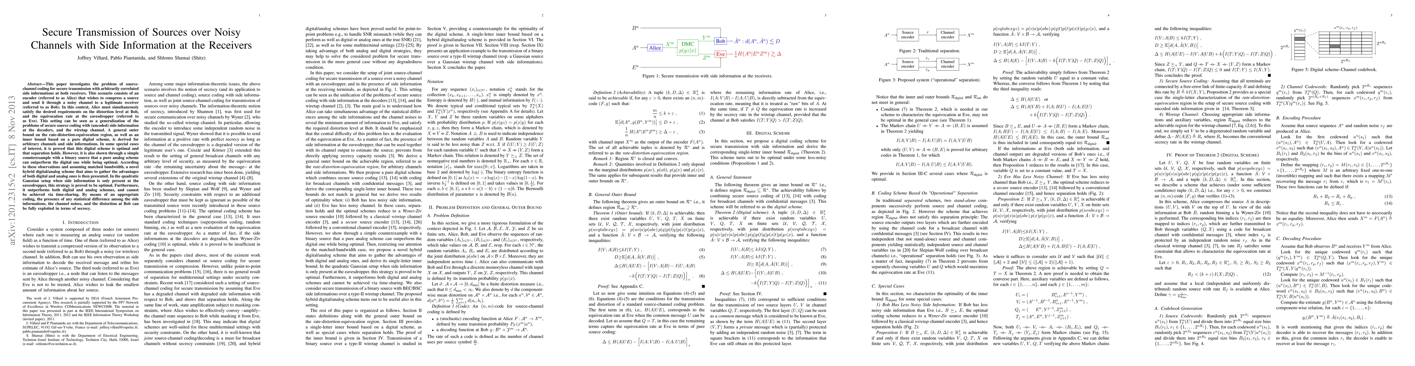 This paper investigates the problem of source-channel coding for secure transmission with arbitrarily correlated side informations at both receivers. This scenario consists of an encoder (referred to as Alice) that wishes to compress a source and send it through a noisy channel to a legitimate receiver (referred to as Bob). In this context, Alice must simultaneously satisfy the desired requirements on the distortion level at Bob, and the equivocation rate at the eavesdropper (referred to as Eve). This setting can be seen as a generalization of the problems of secure source coding with (uncoded) side information at the decoders, and the wiretap channel. A general outer bound on the rate-distortion-equivocation region, as well as an inner bound based on a pure digital scheme, is derived for arbitrary channels and side informations. In some special cases of interest, it is proved that this digital scheme is optimal and that separation holds. However, it is also shown through a simple counterexample with a binary source that a pure analog scheme can outperform the digital one while being optimal. According to these observations and assuming matched bandwidth, a novel hybrid digital/analog scheme that aims to gather the advantages of both digital and analog ones is then presented. In the quadratic Gaussian setup when side information is only present at the eavesdropper, this strategy is proved to be optimal. Furthermore, it outperforms both digital and analog schemes, and cannot be achieved via time-sharing. By means of an appropriate coding, the presence of any statistical difference among the side informations, the channel noises, and the distortion at Bob can be fully exploited in terms of secrecy.