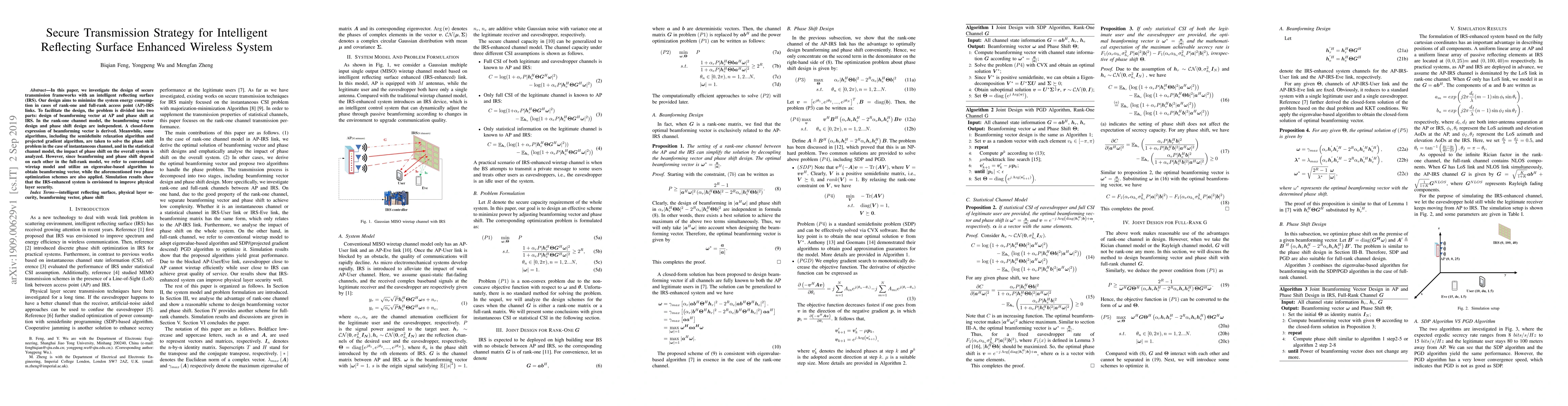 The paper investigates secure transmission strategies using intelligent reflecting surfaces (IRS) in wireless systems, dividing the problem into rank-one and full-rank channel models. It derives closed-form expressions and uses algorithms like semidefinite relaxation and projected gradient for optimization.