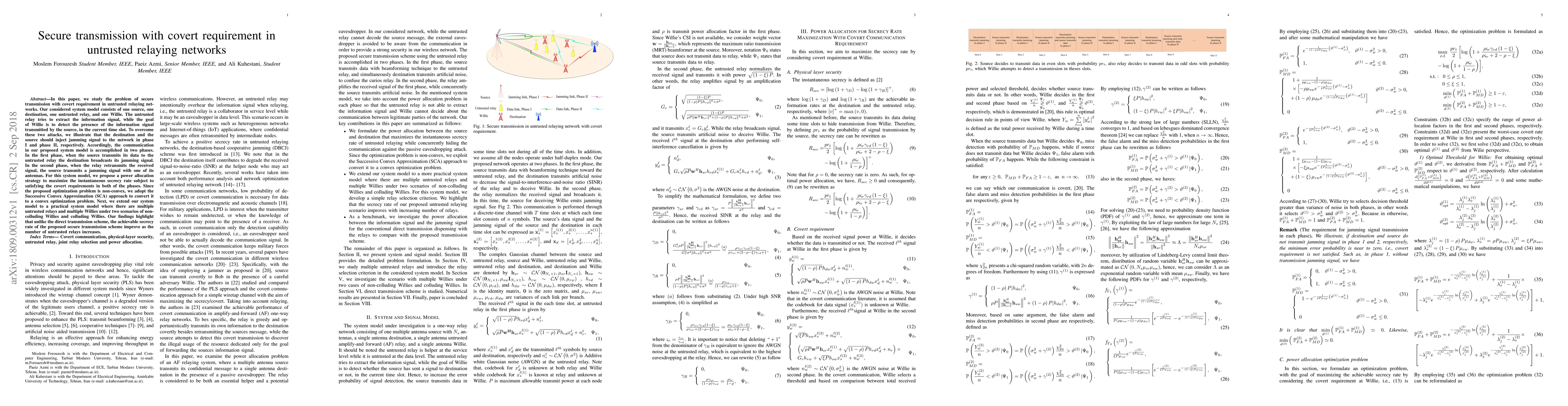 This paper investigates secure transmission in untrusted relay networks with covert requirements, proposing a two-phase jamming strategy to counter attacks from an untrusted relay and a potential eavesdropper, Willie. The authors utilize a Successive Convex Approximation approach to optimize power allocation for maximizing secrecy rate, and extend the model to scenarios with multiple relays and eavesdroppers.
