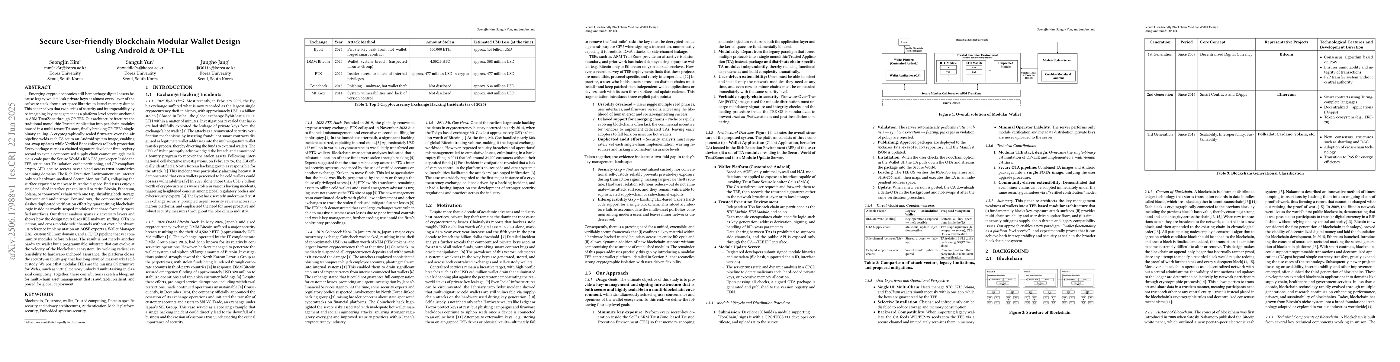 Emerging crypto economies still hemorrhage digital assets because legacy wallets leak private keys at almost every layer of the software stack, from user-space libraries to kernel memory dumps. This paper solves that twin crisis of security and interoperability by re-imagining key management as a platform-level service anchored in ARM TrustZone through OP-TEE. Our architecture fractures the traditional monolithic Trusted Application into per-chain modules housed in a multi-tenant TA store, finally breaking OP-TEE's single-binary ceiling. A cryptographically sealed firmware-over-the-air pipeline welds each TA set to an Android system image, enabling hot-swap updates while Verified Boot enforces rollback protection. Every package carries a chained signature developer first, registry second so even a compromised supply chain cannot smuggle malicious code past the Secure World's RSA-PSS gatekeeper. Inside the TEE, strict inter-TA isolation, cache partitioning, and GP-compliant crypto APIs ensure secrets never bleed across trust boundaries or timing domains. The Rich Execution Environment can interact only via hardware-mediated Secure Monitor Calls, collapsing the surface exposed to malware in Android space. End-users enjoy a single polished interface yet can install or retire Bitcoin, Ethereum, Solana, or tomorrow's chain with one tap, shrinking both storage footprint and audit scope. For auditors, the composition model slashes duplicated verification effort by quarantining blockchain logic inside narrowly scoped modules that share formally specified interfaces. Our threat analysis spans six adversary layers and shows how the design neutralizes REE malware sniffing, OTA injection, and cross-module side channels without exotic hardware. A reference implementation on AOSP exports a Wallet Manager HAL, custom SELinux domains, and a CI/CD pipeline that vet community modules before release. The result is not merely another hardware wallet but a programmable substrate that can evolve at the velocity of the blockchain ecosystem. By welding radical extensibility to hardware-anchored assurance, the platform closes the security-usability gap that has long stymied mass-market self-custody. We posit that modular TEEs are the missing OS primitive for Web3, much as virtual memory unlocked multi-tasking in classical computing. Together, these contributions sketch a blueprint for multi-chain asset management that is auditable, resilient, and poised for global deployment.