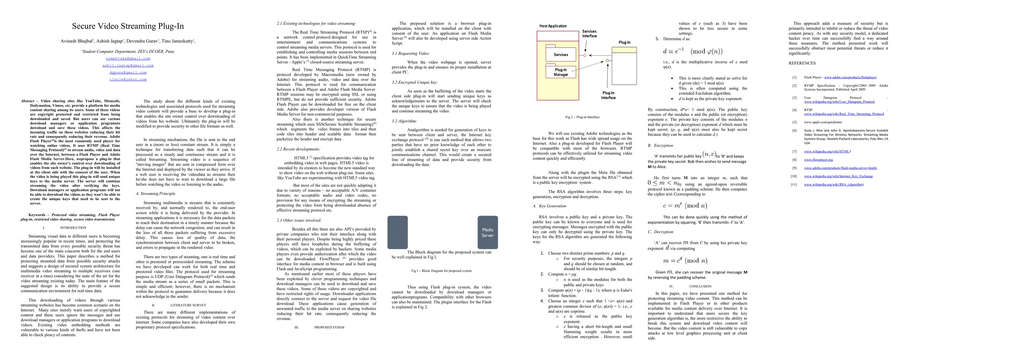 This work is novel because it proposes a plug-in-based solution for protecting streaming video content and uses the RSA algorithm for encryption.