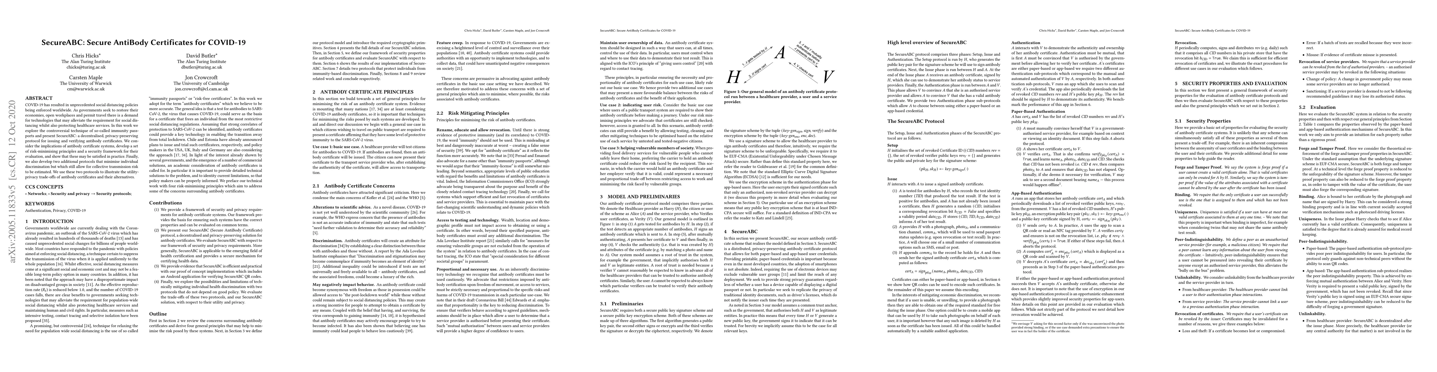 Researchers developed SecureABC, a decentralized protocol for issuing and verifying antibody certificates to alleviate social distancing while protecting healthcare services. The study explores the implications of immunity passports and highlights the utility-privacy trade-offs of antibody certificates and their alternatives.