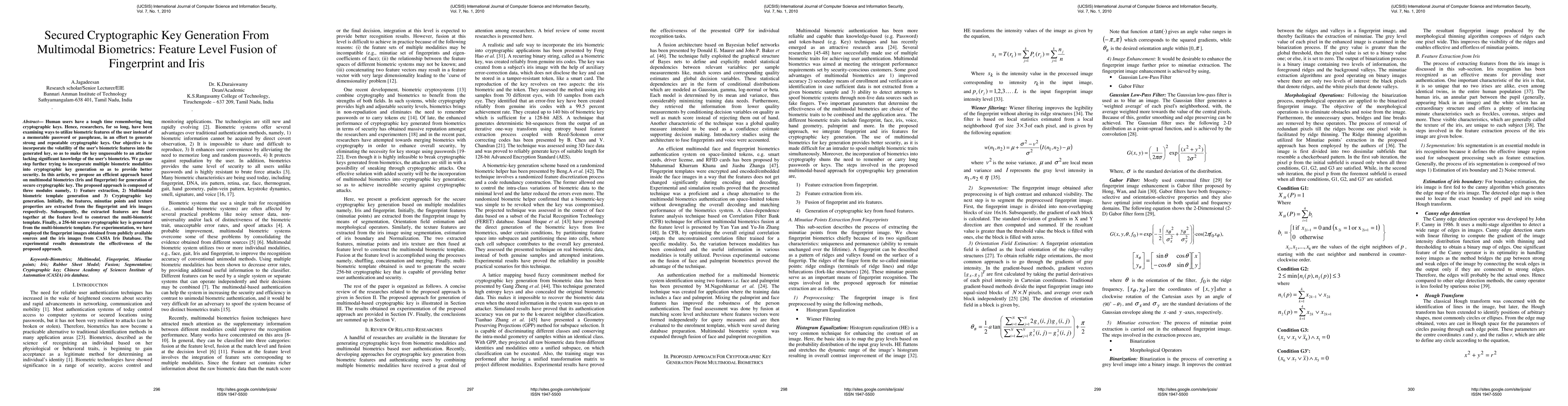 This paper proposes a method for generating secure cryptographic keys using multimodal biometrics, specifically fusing fingerprint and iris features. The approach involves feature extraction, multimodal biometric template generation, and cryptographic key generation, resulting in a 256-bit secure key. Experimental results using publicly available datasets show the effectiveness of the method.