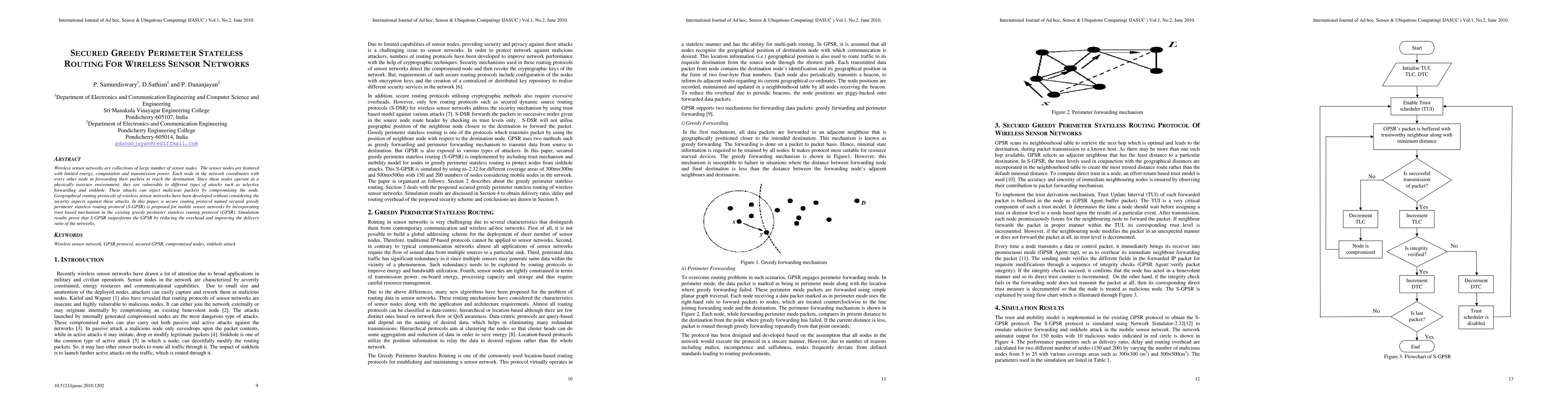 This paper proposes a secure routing protocol, S-GPSR, for wireless sensor networks that incorporates a trust-based mechanism to enhance security against attacks like selective forwarding and sinkhole. Simulation results show that S-GPSR reduces overhead and improves packet delivery compared to the original GPSR.