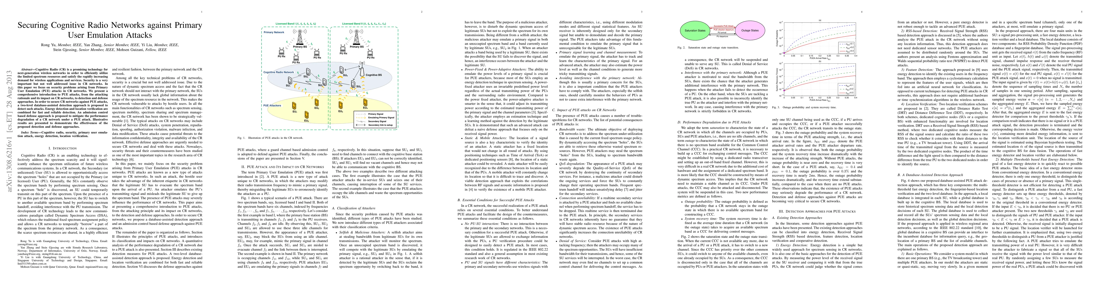 This paper proposes a two-level detection approach to secure Cognitive Radio networks against Primary User Emulation attacks, combining energy detection with location verification to detect and defend against such threats.