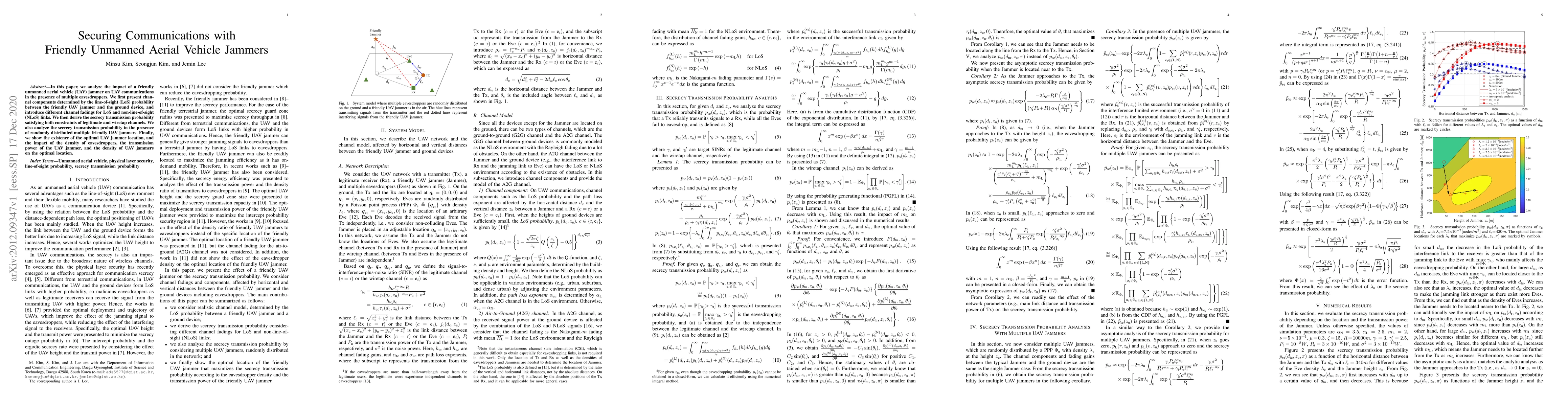 This paper investigates how a friendly UAV jammer can enhance secure communications by disrupting eavesdroppers, analyzing the impact of jamming on channel conditions and deriving the secrecy transmission probability. It also explores the optimal jammer location considering various factors like eavesdropper density and jammer power.