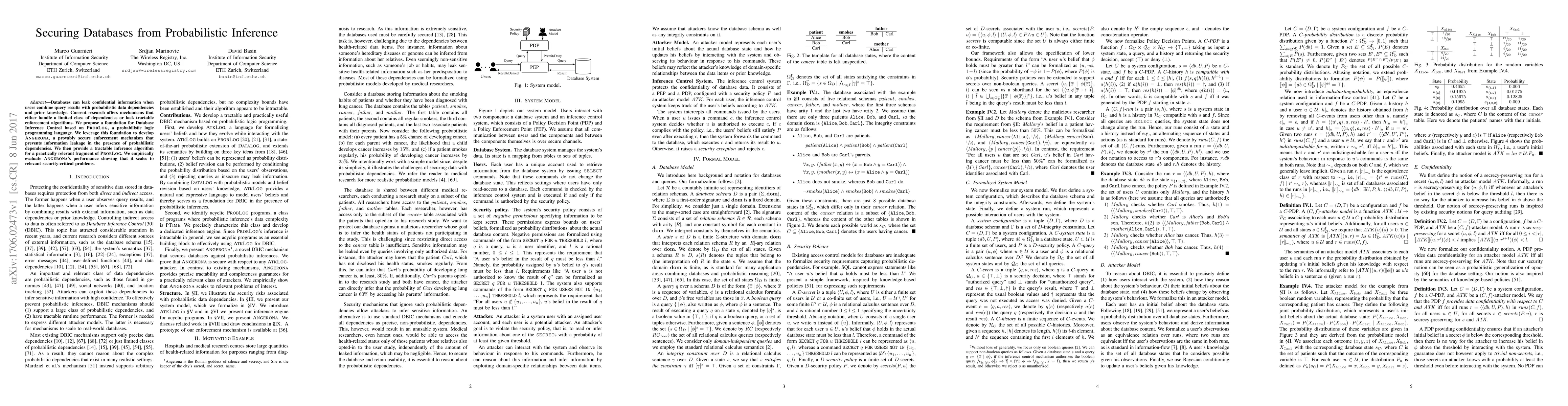 This paper proposes a foundation for Database Inference Control using ProbLog, introducing Angerona, a secure enforcement mechanism that prevents information leakage from probabilistic dependencies. The authors provide a tractable inference algorithm and demonstrate Angerona's scalability through empirical evaluation.