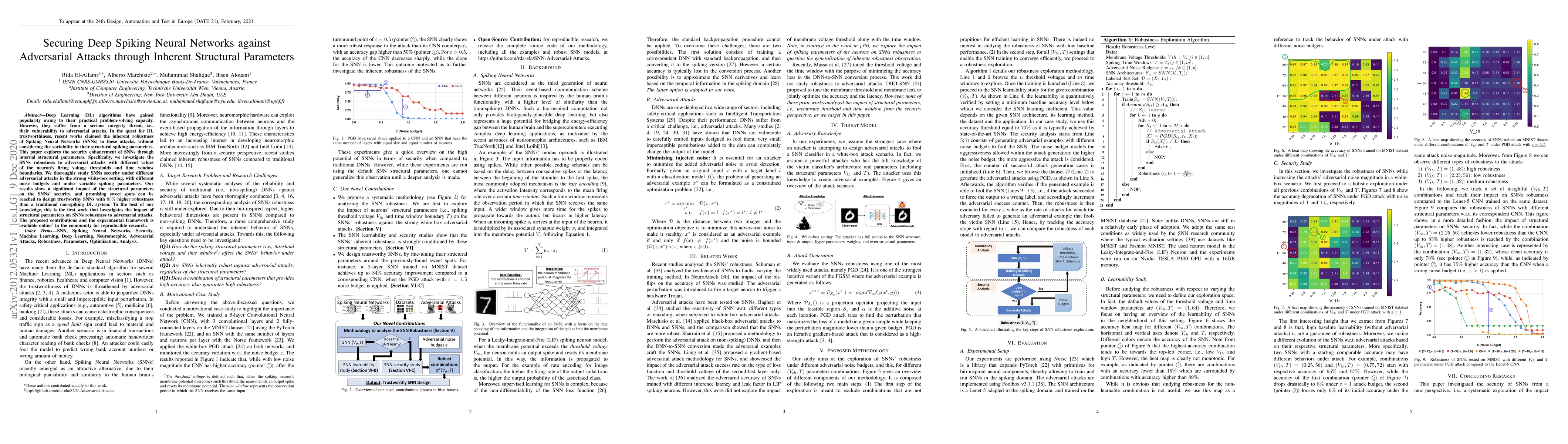 This paper investigates how adjusting the inherent structural parameters of Spiking Neural Networks (SNNs), such as neuron firing thresholds and time window boundaries, can enhance their robustness against adversarial attacks. The study finds that these parameters significantly impact SNN security, leading to designs that are 85% more robust than traditional Deep Learning systems.
