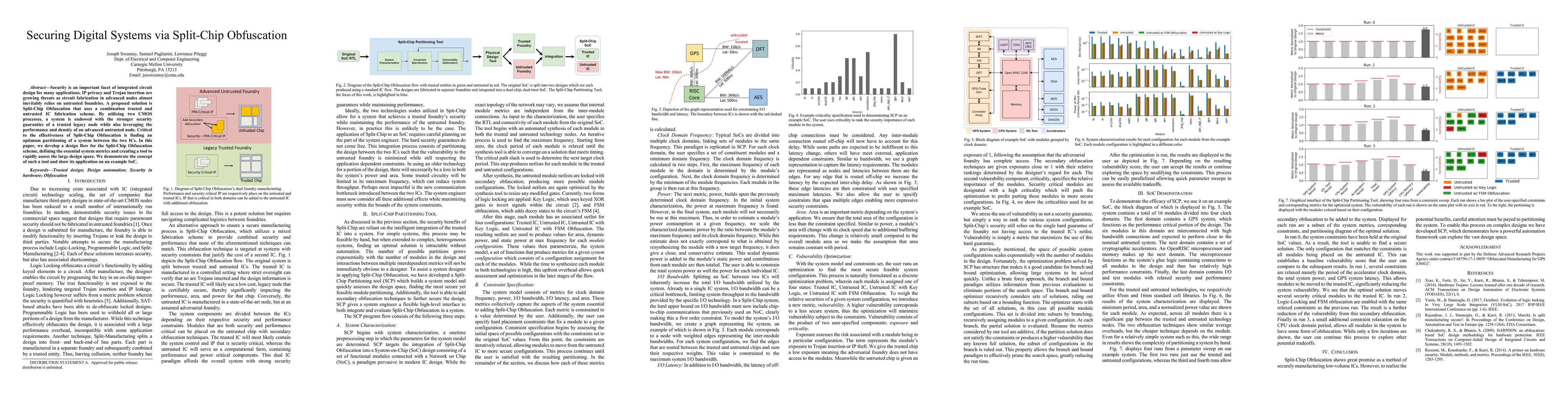 This paper introduces Split-Chip Obfuscation, a method that combines trusted and untrusted IC fabrication to enhance security in digital systems. It presents a design flow and a tool for optimally partitioning systems between two ICs, demonstrated on an example SoC.