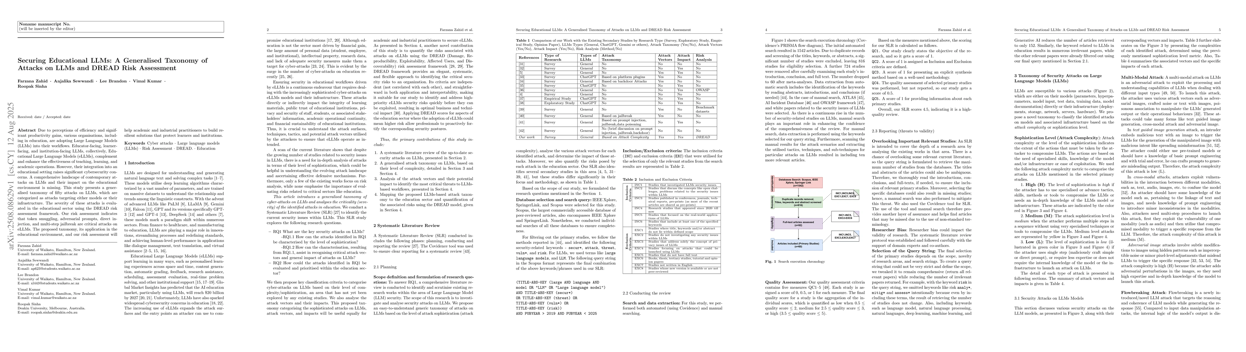 The study highlights the need for educators and policymakers to prioritize the security of LLMs in educational settings, which can have significant implications for student learning outcomes and institutional reputation.