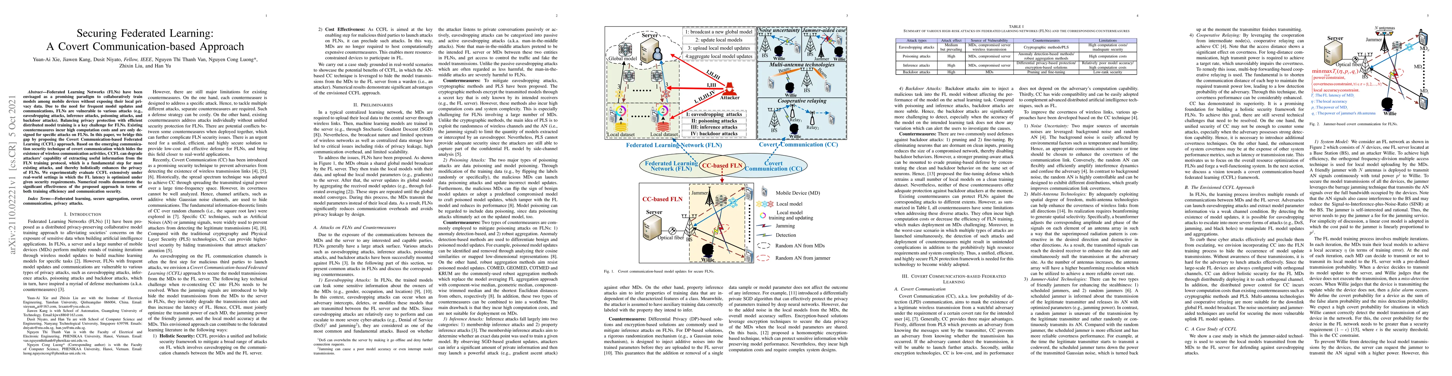 Federated Learning Networks (FLNs) have been envisaged as a promising paradigm to collaboratively train models among mobile devices without exposing their local privacy data. Due to the need for frequent model updates and communications, FLNs are vulnerable to various attacks (e.g., eavesdropping attacks, inference attacks, poisoning attacks, and backdoor attacks). Balancing privacy protection with efficient distributed model training is a key challenge for FLNs. Existing countermeasures incur high computation costs and are only designed for specific attacks on FLNs. In this paper, we bridge this gap by proposing the Covert Communication-based Federated Learning (CCFL) approach. Based on the emerging communication security technique of covert communication which hides the existence of wireless communication activities, CCFL can degrade attackers' capability of extracting useful information from the FLN training protocol, which is a fundamental step for most existing attacks, and thereby holistically enhances the privacy of FLNs. We experimentally evaluate CCFL extensively under real-world settings in which the FL latency is optimized under given security requirements. Numerical results demonstrate the significant effectiveness of the proposed approach in terms of both training efficiency and communication security.