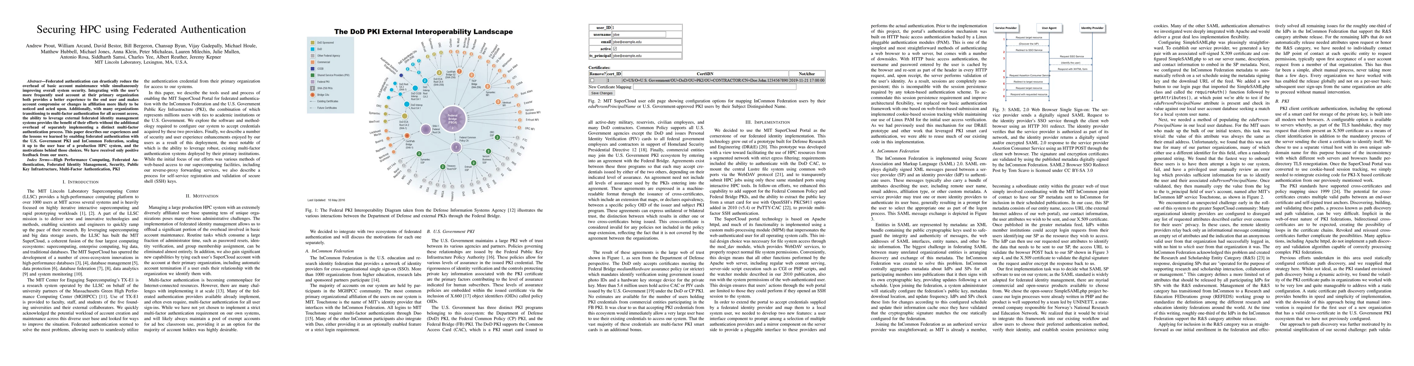 This paper explores the benefits of federated authentication for securing HPC systems, highlighting improved security and reduced overhead with integration with external identity management systems.